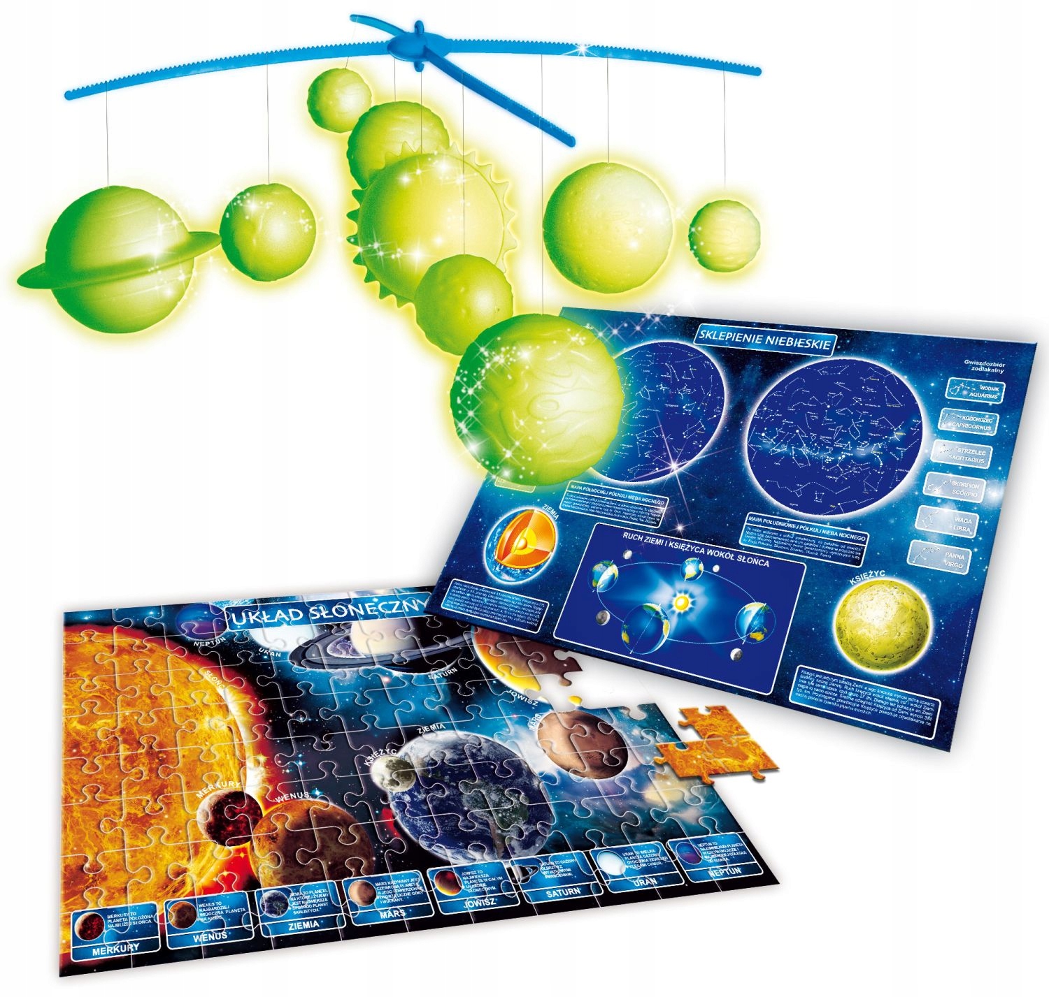 Астрономия, одна из самых увлекательных и загадочных наук, теперь в вашем распоряжении кончики пальцев рук. Постройте свою собственную модель Солнечной системы с 9 планетами, раскройте тайны Солнечной системы, космического пространства и узнайте о созвездиях. Для лучшего эффекта можно повесить модель на потолок. Иллюстрированная инструкция на польском языке проведет вас через все этапы сборки трехмерной модели. Она также предоставит много информации и курьезов в области астрономии. Дополнительно вы получите большой плакат с созвездиями и пазлом Солнечной системы.