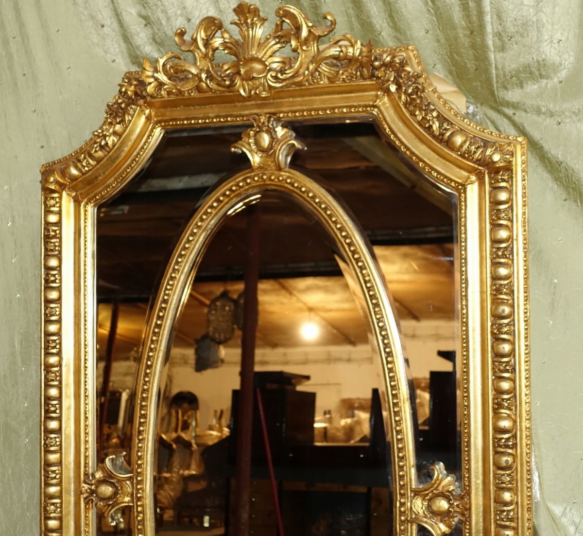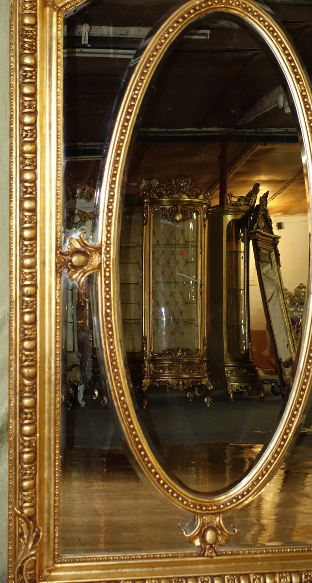 Открытое овальное золотое барокко зеркало Phasped Crystal Tremo 214 см.