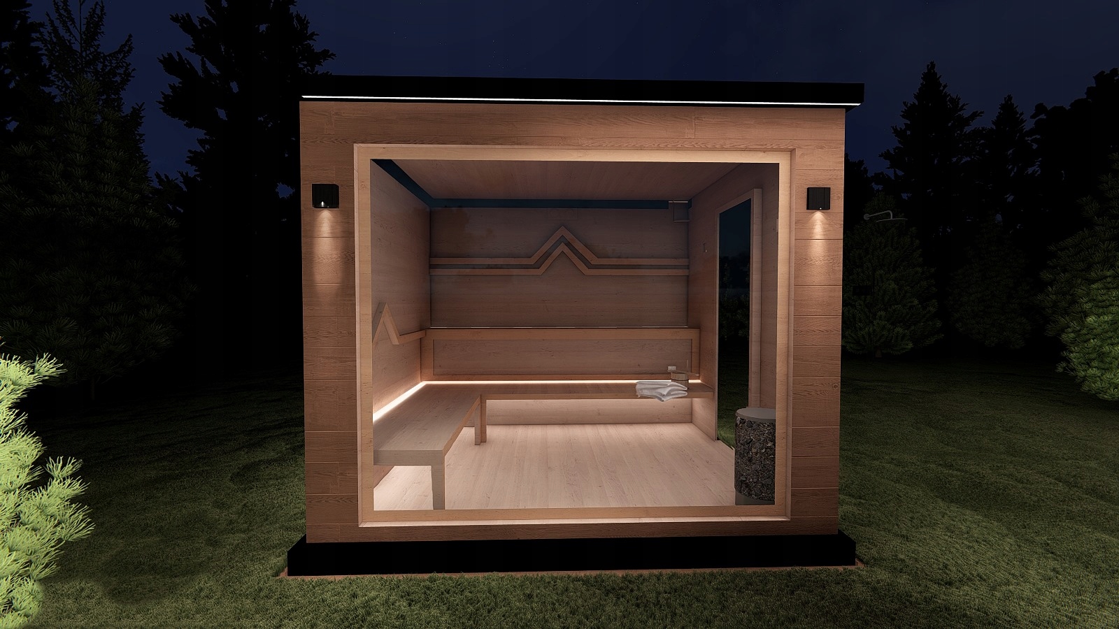 Сауна полностью меблирована, что позволяет вам расслабиться и пользоваться преимуществами здоровья, как на профессиональном солнце. Он изолирован каменной шерстью 8 см , фасад сделан из свечи и листового металла для шва придает ему современный вид. Все структурные элементы изготовлены из материалов высочайшего качества, которые гарантируют длительное время использования.