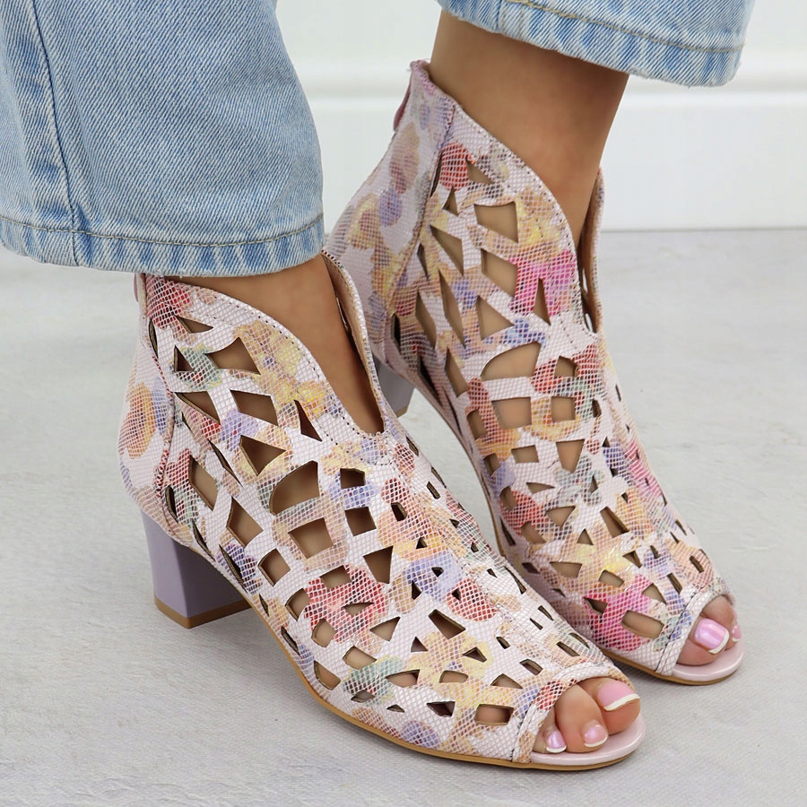 Women Openwork Open Ope Toe Boots с цветами M. Daszyński MR1954-15