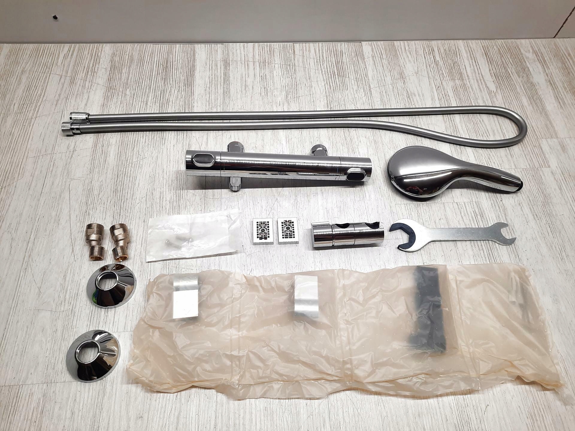 • Состоит из термостатического смесителя и комплекта со штангой для душа.