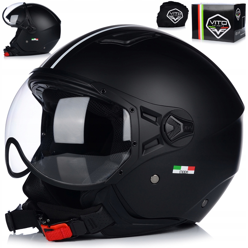 helmet vito Fashion - это безопасный мотоцикл -шлем, b> с сертификатом безопасности ece r 22.06. Эта модель имеет инновационную оболочку и изготовлена из высококачественных материалов. Вес этого шлема всего 1100 г. Идеально подходит для городского и туристического вождения на скутерах и вертолетах.