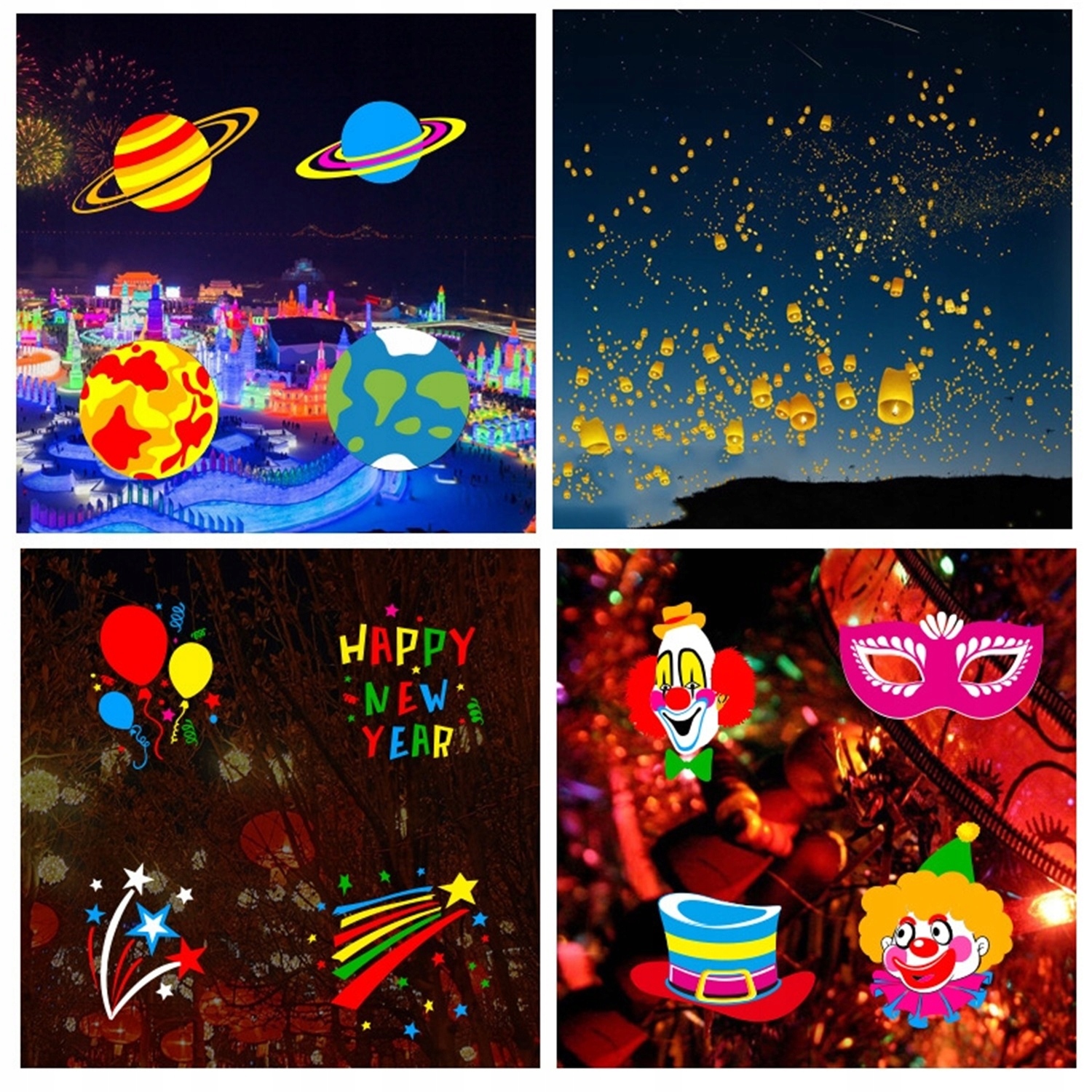Подходит для Хэллоуина, Рождества и других праздников, будь то Хэллоуин с сумасшедшими тыквами, зомби и привидениями; Рождество с летающими снежинками и Дедом Морозом; Новогодняя ночь с серпантинами и фейерверками; или Пасха, День Благодарения, дни рождения и планетарные темы.