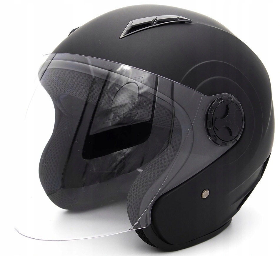 Открытый шлем матового черного цвета с сертификатом и омологацией. Шлем изготовлен из легких и прочных материалов. Тройная вентилируемая внутренняя часть, наполненная пенополистиролом, обеспечивает комфорт и безопасность пользователя.