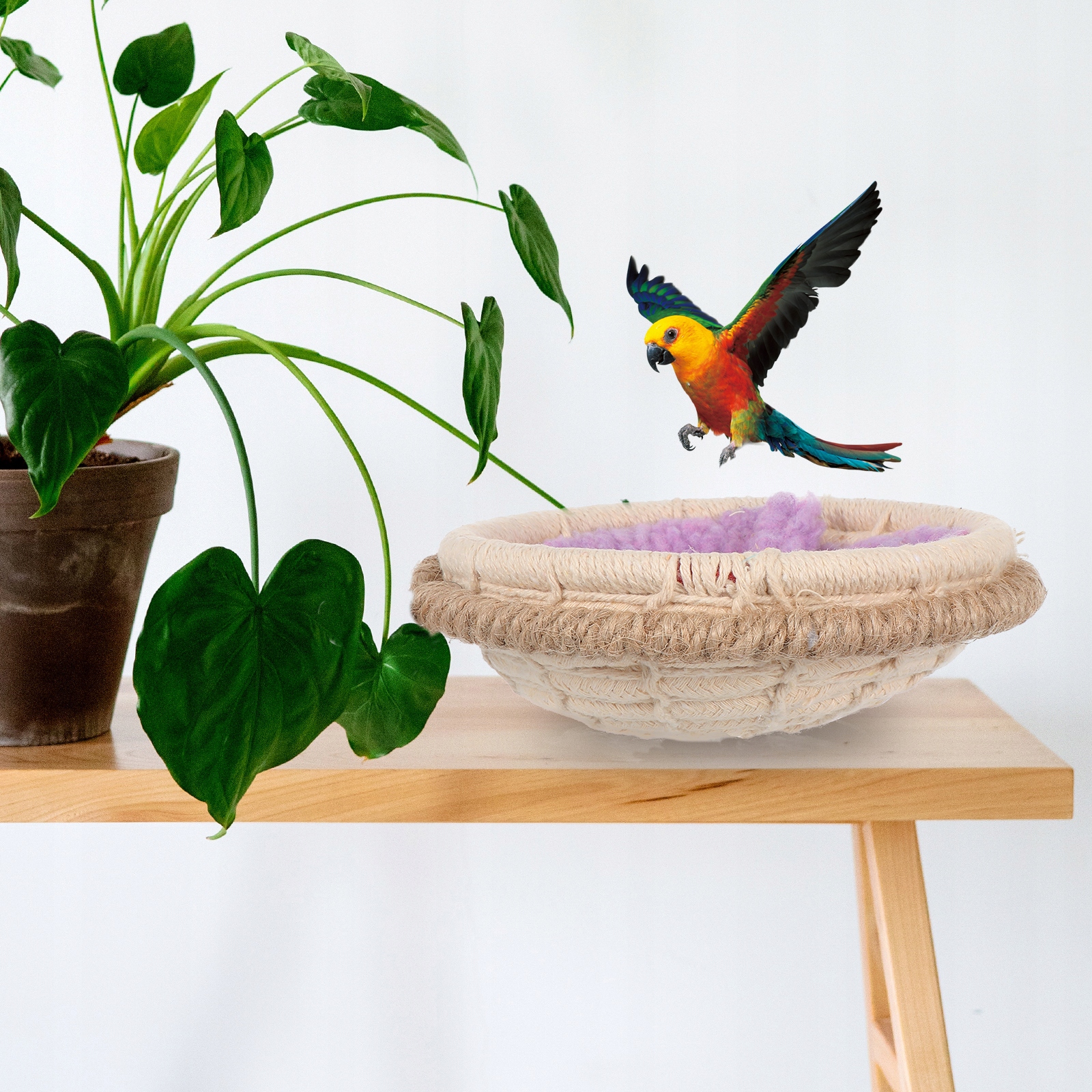 ✅Используется натуральный хлопковый канат и веревочный материал, прочный и безопасный для птиц.