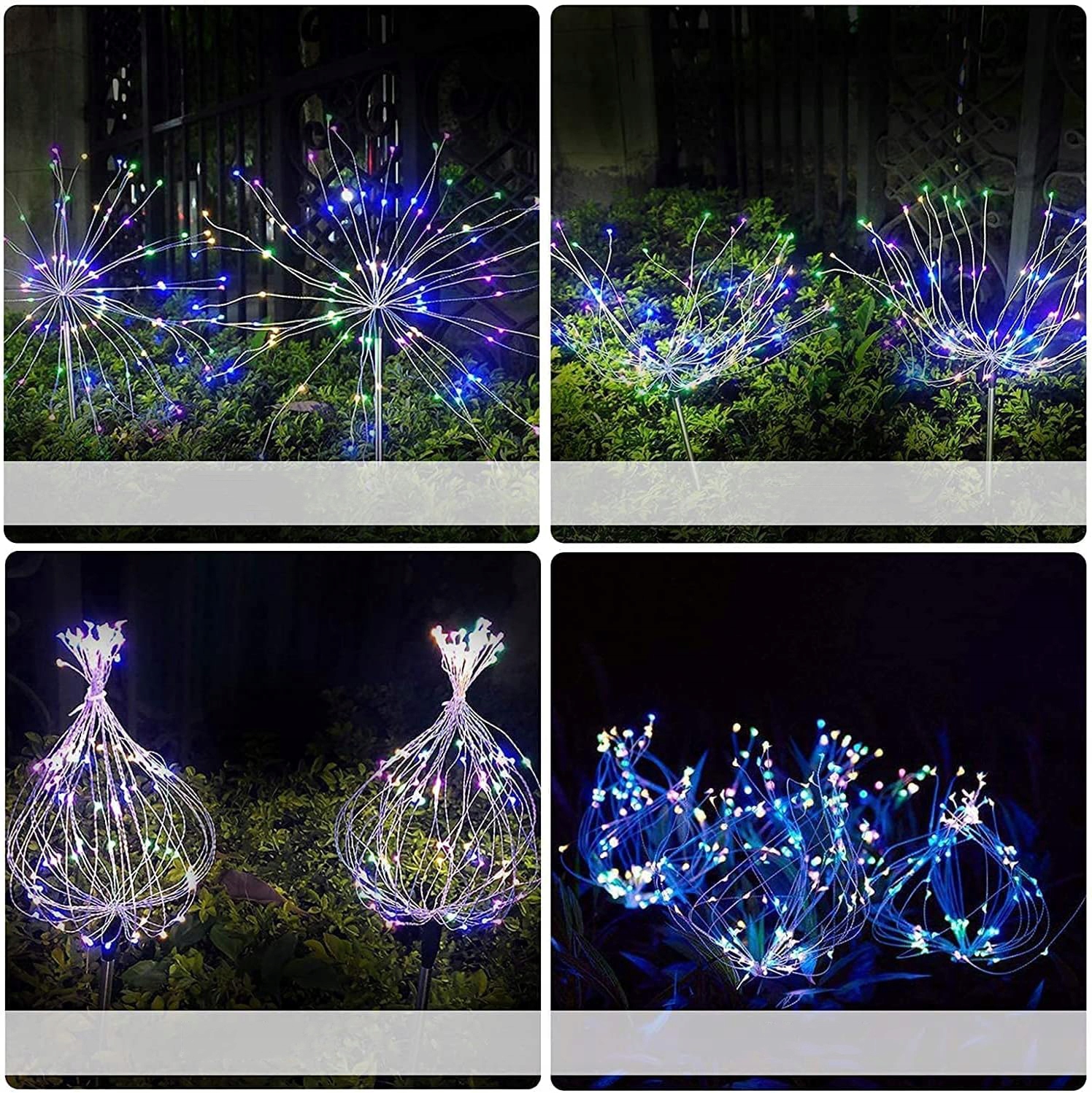 Солнечные фейерверки изготовлены из высококачественной гибкой легированной проволоки и 120 светодиодных бусин. Вы можете вращать любимую фигуру, например цветок, дерево, фейерверк, большой круг, сердце, спираль, шар и т. д. Эти солнечные фейерверки сделают ваш сад более уникальным и очаровательным.