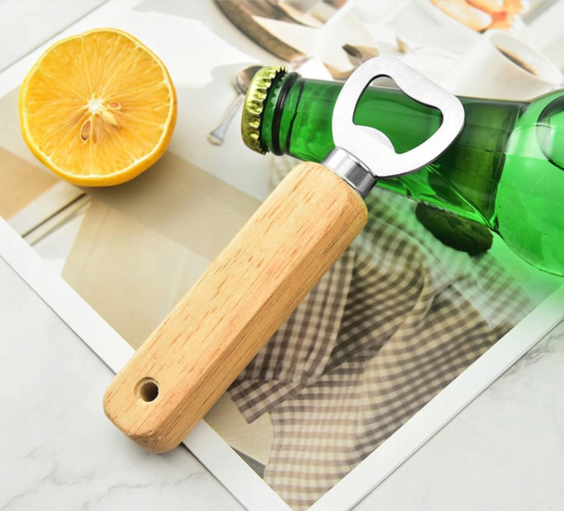 - 🍻 - Широко используется: открывалка для бутылок с деревянной ручкой подходит для открытия пивных бутылок, бутылок сока, молоко и т. д. имеет широкий спектр применения, подходит для повседневного использования.