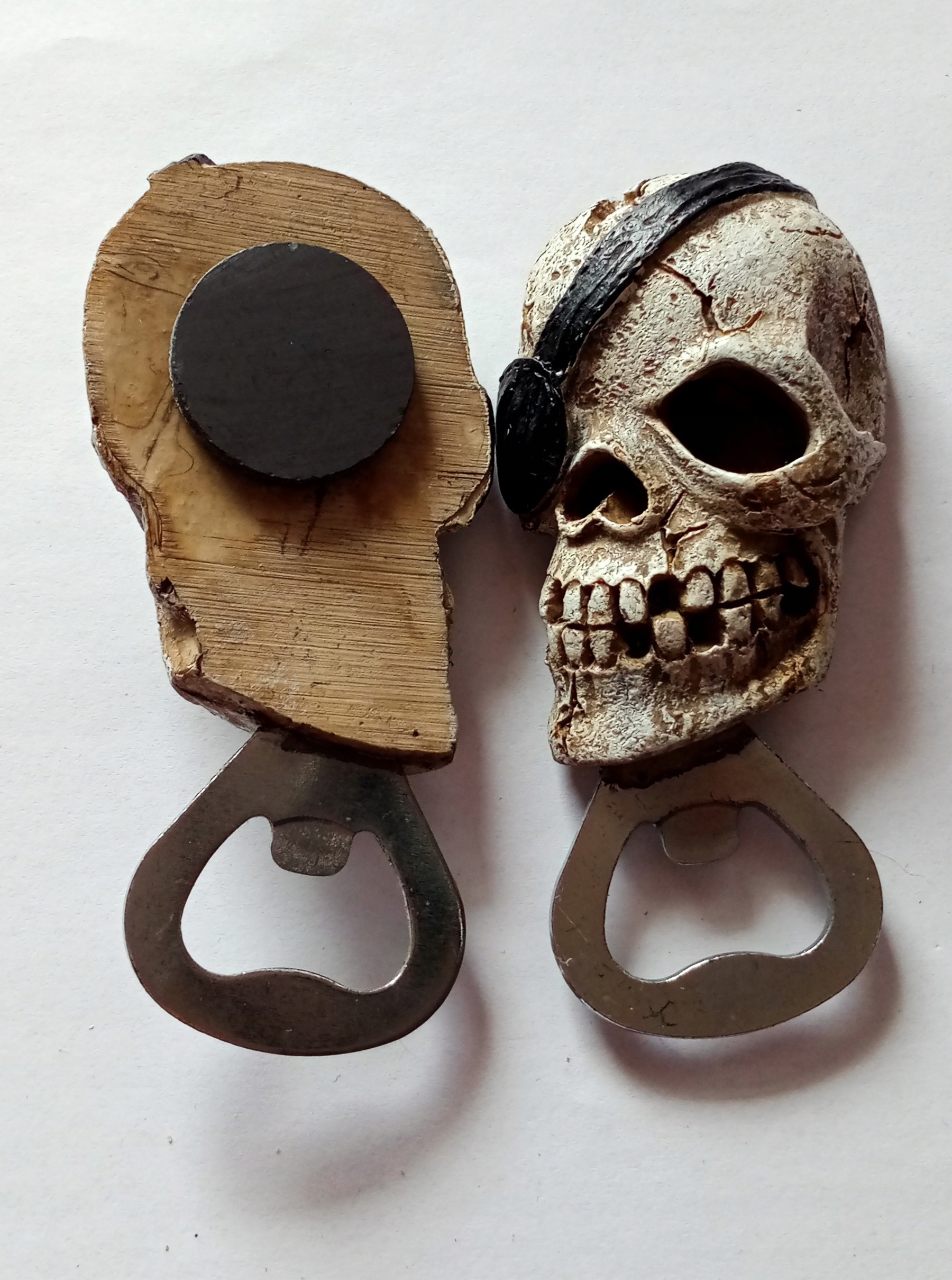 ОТКРЫШКА С МАГНИТОМ - ПИРАТ - ЧЕРЕП - КОРИЧНЕВАЯ ЛЕНТА