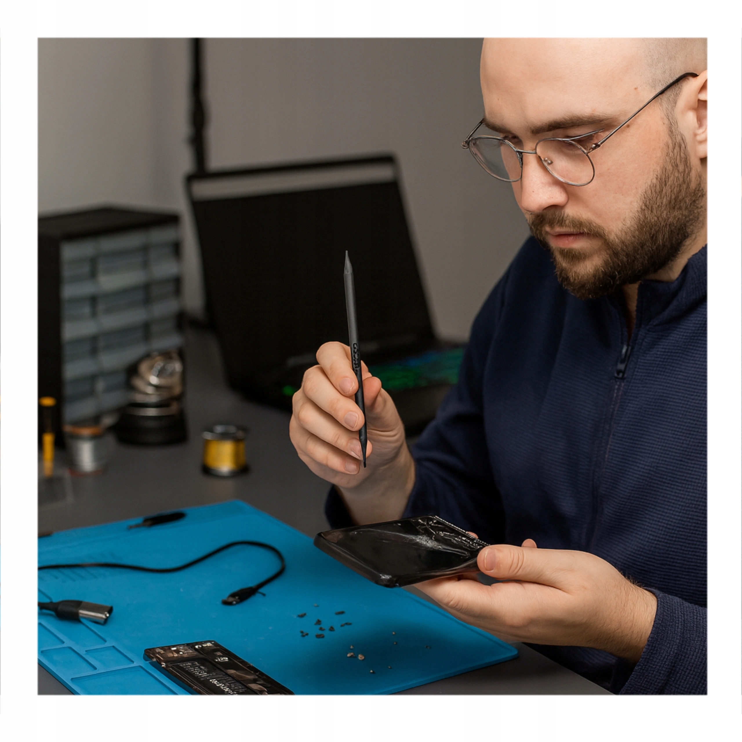 Антистатический ответ на оборудование для практического наркологического обслуживания электроники. Специально профилированные края позволяют быстро и безопасно открывать смартфоны, планшеты, ноутбуки, навигаторы и другие устройства.