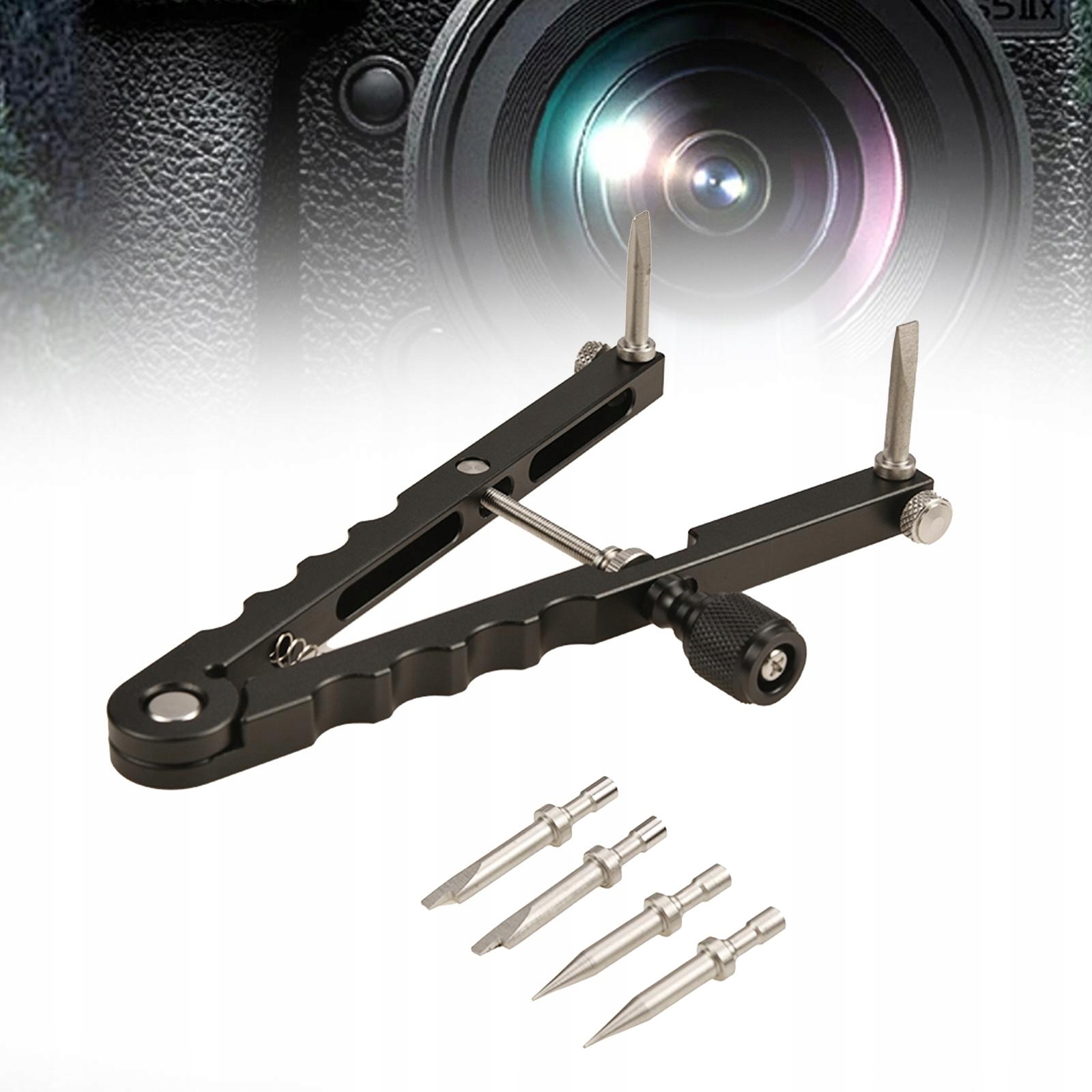 [Безопасная эксплуатация]: этот инструмент для ремонта объективов, оснащенный винтом с накатанной головкой и винтом для надежной фиксации, обеспечивает бесперебойную работу, не повреждая ваше оборудование.