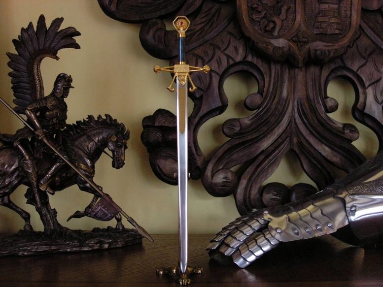Легендарный Робин Гуд – фигура известная и узнаваемая. Поэтому элементы его вооружения также известны достаточно хорошо. Реплика меча Робина Локсли представляет собой прочную модель, изготовленную только из лучших материалов: высокоуглеродистой толеданской стали. Стоит знать, что этот тип стали со времен Средневековья считался лучшим для изготовления холодного оружия. Продолжая традицию, предлагаем вам идеальную миниатюру меча Робина Локсли.