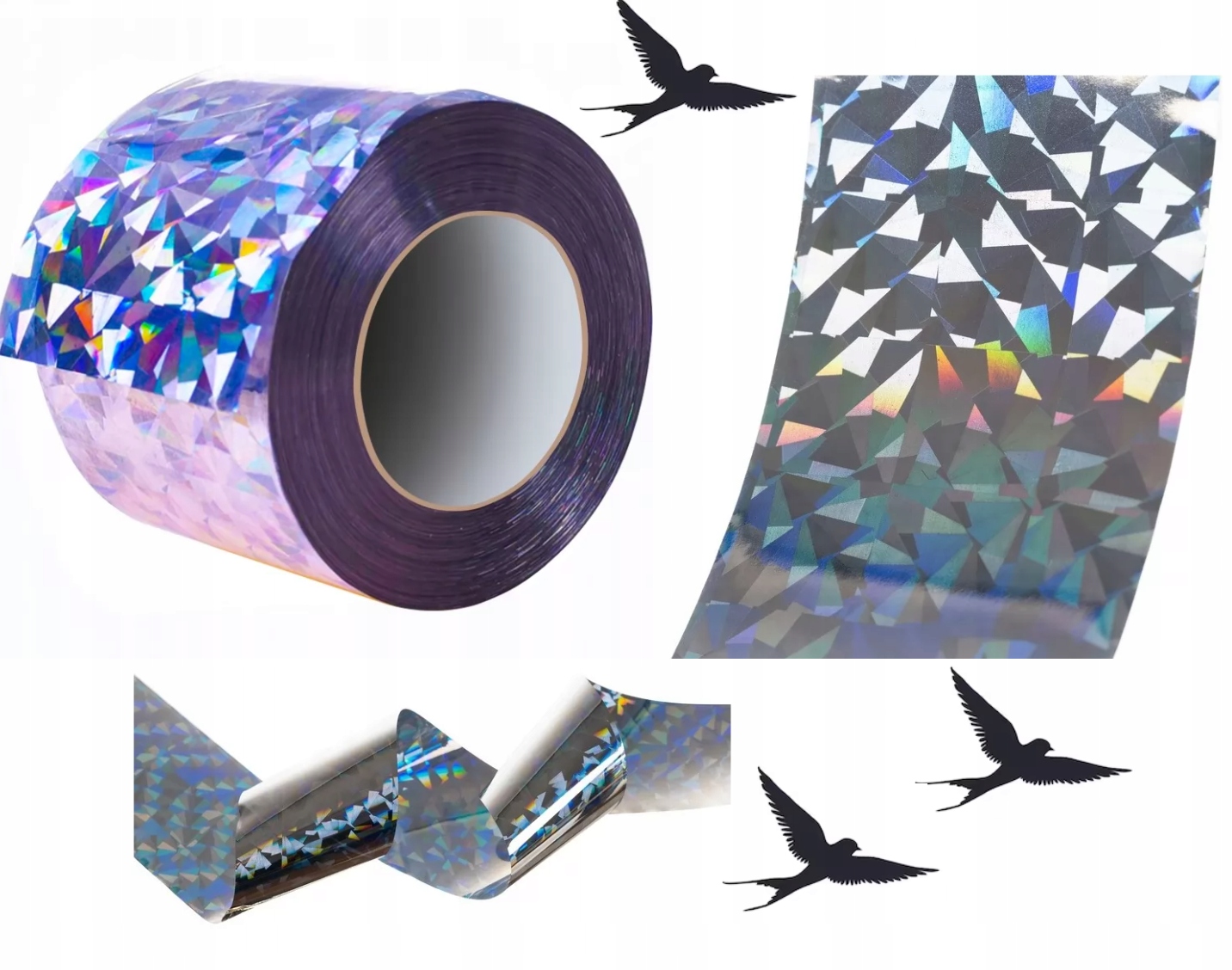 Простой и экологичный способ отпугивания птиц. Инновационный метод отпугивания с голограммной лентой. Поверхность ленты отражает свет и издает неприятный для птиц металлический звук. Универсальную птицеотпугивающую ленту можно использовать в любом месте, подверженном нежелательному присутствию птиц.