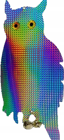 - КОЛОКОЛЬЧИКИ — у голографической совы есть 2 колокольчика, которые при движении на ветру издают пугающие звуки. Для птиц это может быть неприятный звук.