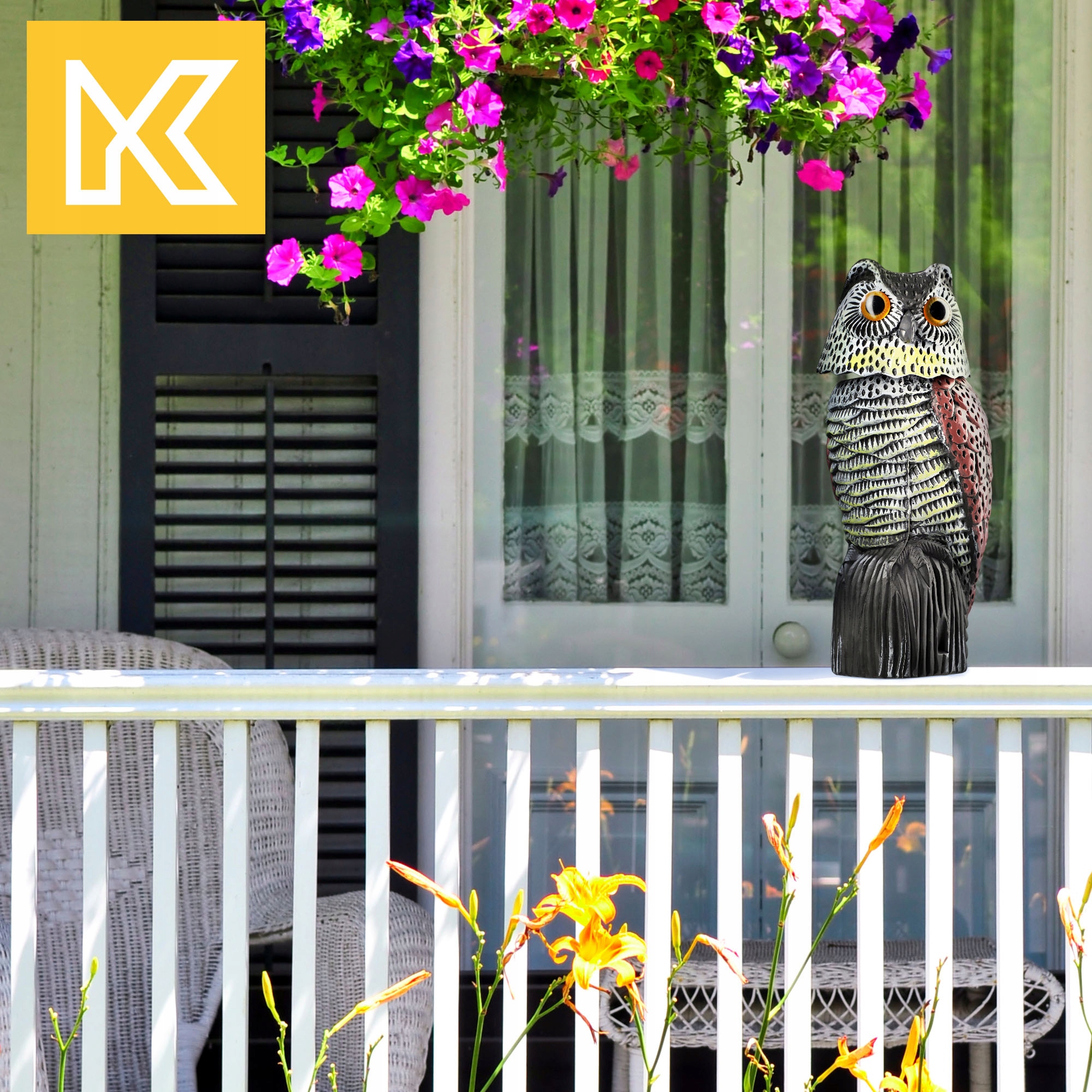 Вы ищете отпугиватель птиц, который также будет эстетическое украшение вашего сада?Купите фигурку совы с подвижной головой! Наш отпугиватель птиц действительно эффективен. Если на территории появятся нежелательные животные, они быстро откажутся сидеть на заданном месте. Так что вам не придется беспокоиться о повреждениях и загрязнениях.