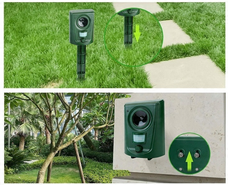 Экологически чистый ультразвук, не убивающий и не причиняющий вред животным. Эти звуки сильно раздражают животных, из-за чего они избегают зоны, охраняемой отпугивателем.