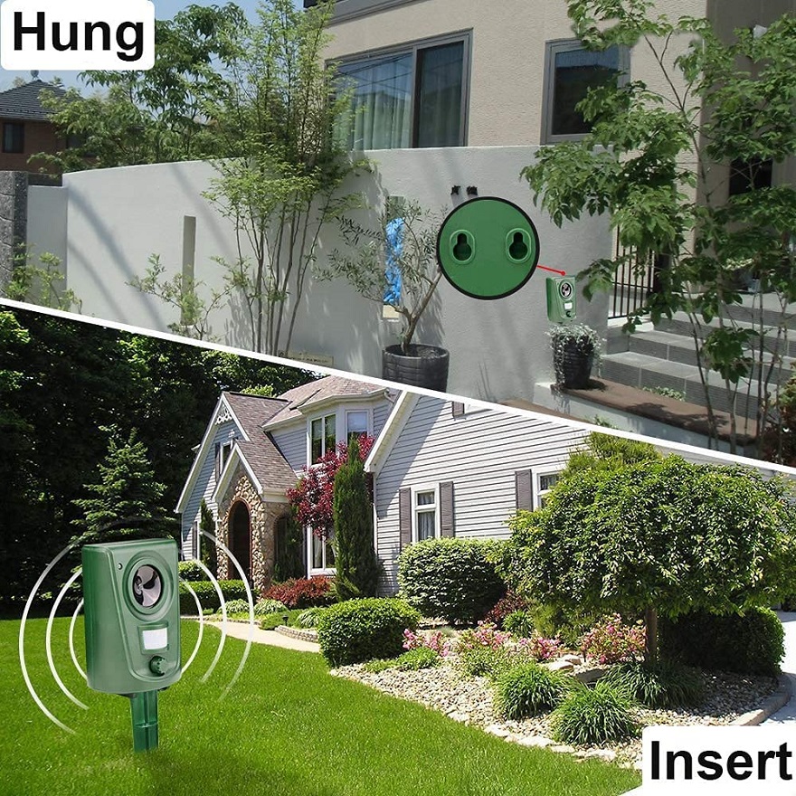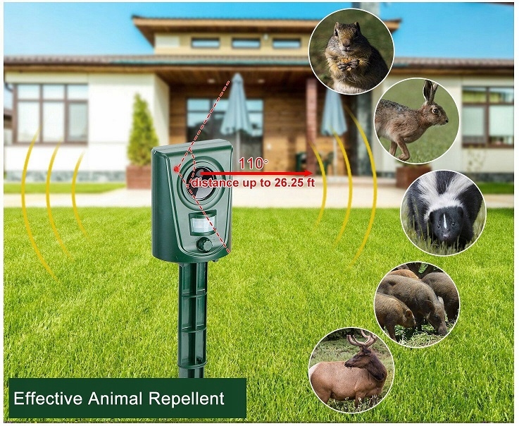 Экологически чистый ультразвук, не убивающий и не причиняющий вред животным. Эти звуки сильно раздражают животных, из-за чего они избегают зоны, охраняемой отпугивателем.