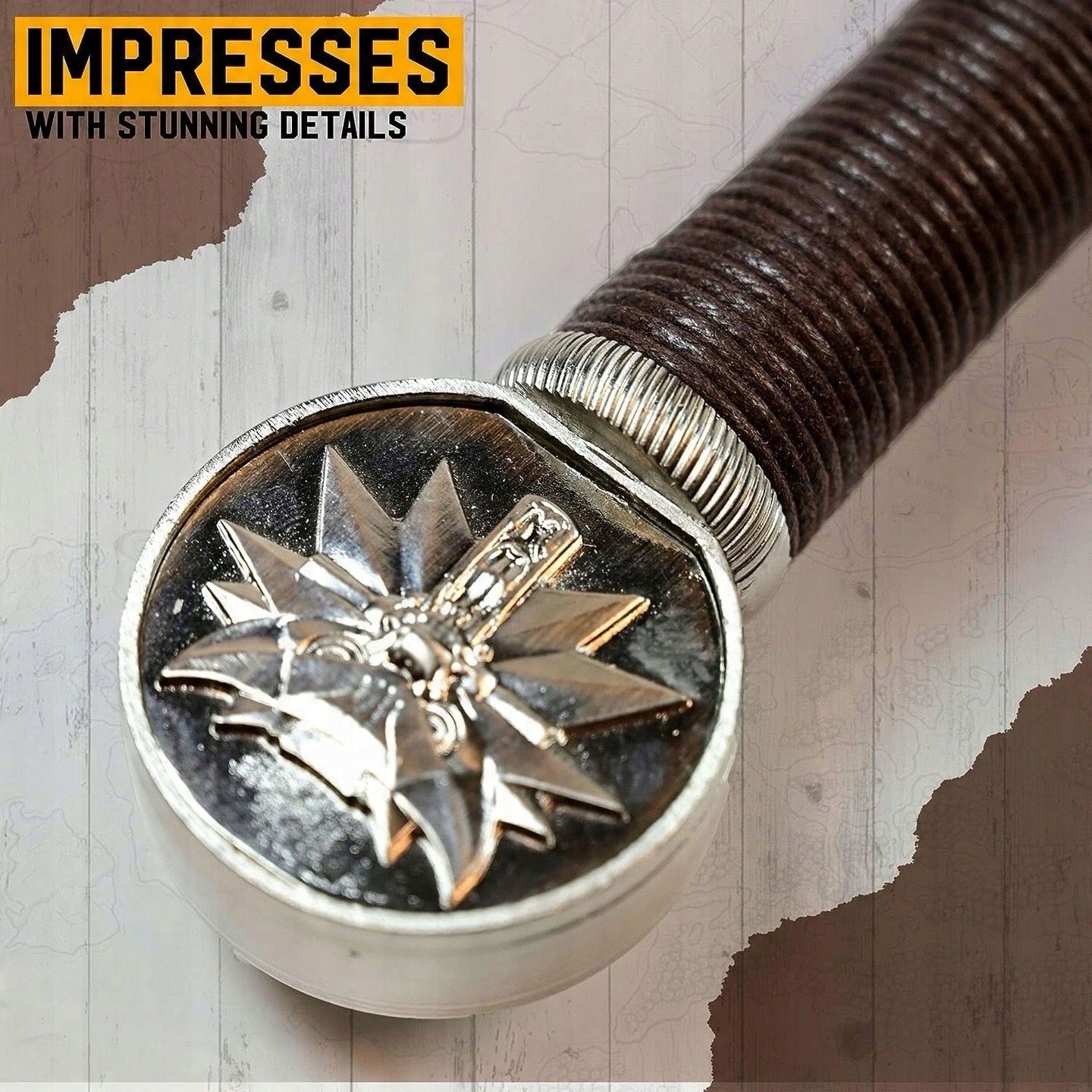 Эксклюзивный набор, состоящий из серебряного меча Riva от Геральта и стального меча, является отличным декоративным элементом для вашего дома, а также уникальный, функциональный продукт для коллекционеров и вентиляторов. Мечи были сделаны с большим вниманием к деталям.