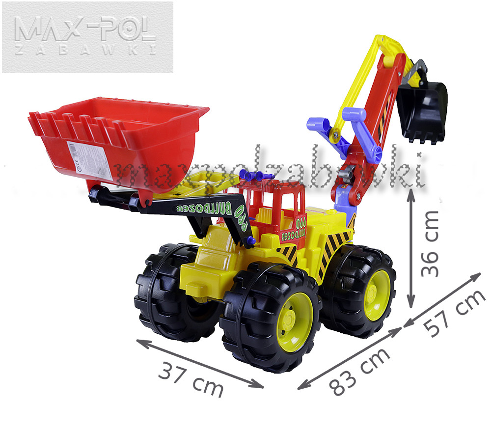Игра в песочнице не может пройти без правильных транспортных средств. Одним из этих транспортных средств является бульдозер Spycho. Спина может быть опустилась и вниз, также возможно контролировать работу самой ложки. Специальные системы блокировки позволяют иммобилизовать руку и ложку в нескольких позициях, что облегчает перевозку материалов. После того, как ребенок поворачивается назад, мы можем полностью использовать игрушку в качестве экскаватора. У руки и ложки есть возможности кручения. Контроль происходит с помощью двух рычагов - один отвечает за работу ложки, другой для управления рукой. Дополнительное оборудование - это блокировка рычага, заставляя его иммобилизован в приподнятом положении.