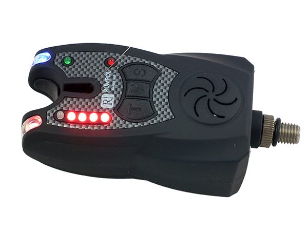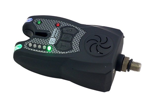 Два светодиода указывают на зарядку. Правый диод - диод памяти приема, горит секунд 20 после окончания приема (если вдруг кто-то проснется, то будет знать причину). Сигнал работает в обе стороны – от берега и к берегу. Светодиодная линия загорается красным, когда поклевка идет с берега, и зеленым, когда рыба плывет к нам. Дополнительно об интенсивности поклевки информирует линия, состоящая из 5 диодов. Чем агрессивнее поклевка, тем больше светодиодов загорается. Когда рыба удаляется от берега, леска светится красным, когда рыба плывет к нам, светодиоды светятся зеленым. Сигнализатор имеет 6 уровней чувствительности, регулировку тона и громкости.