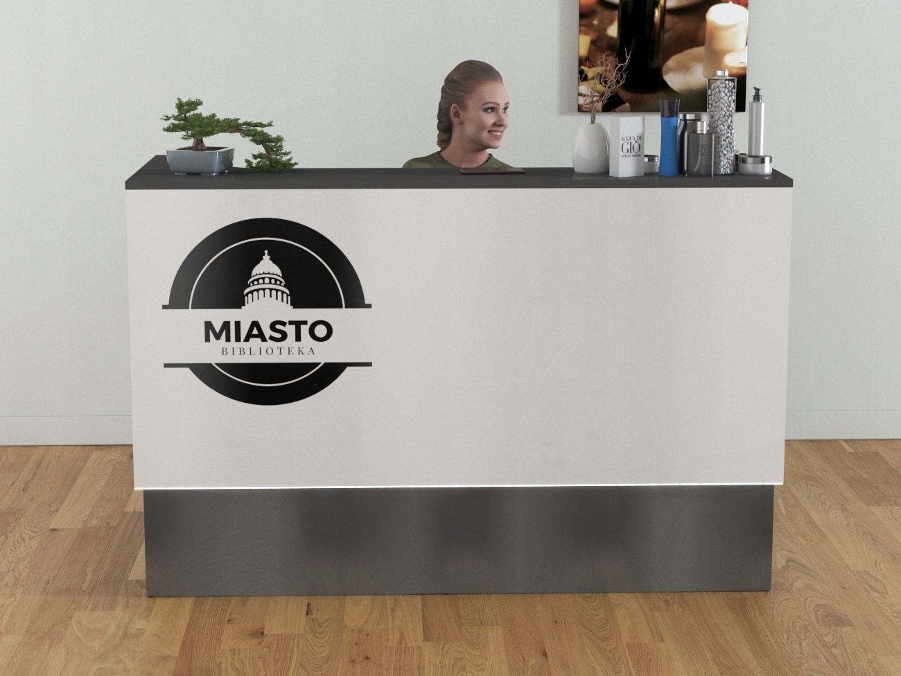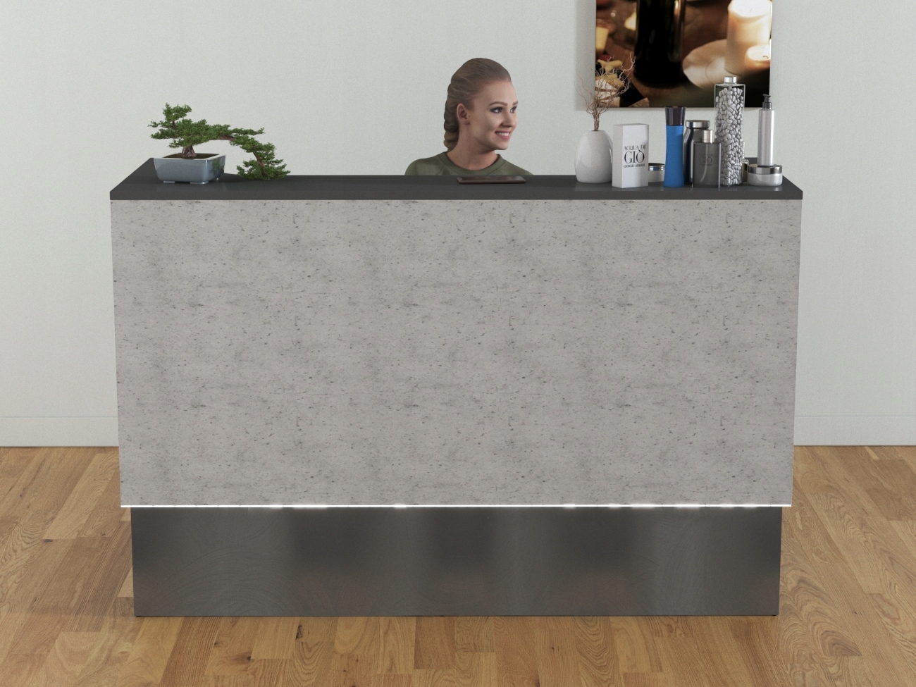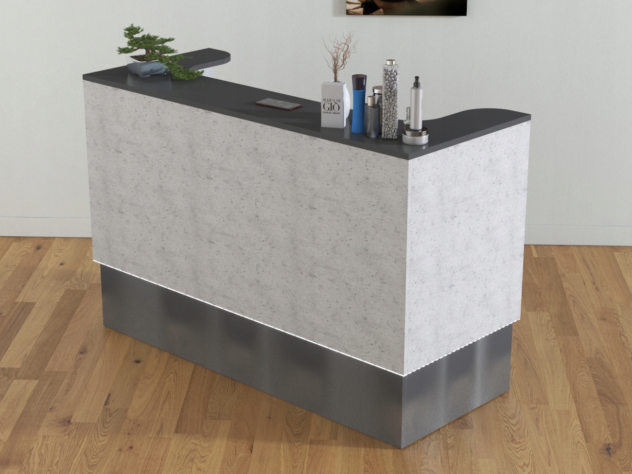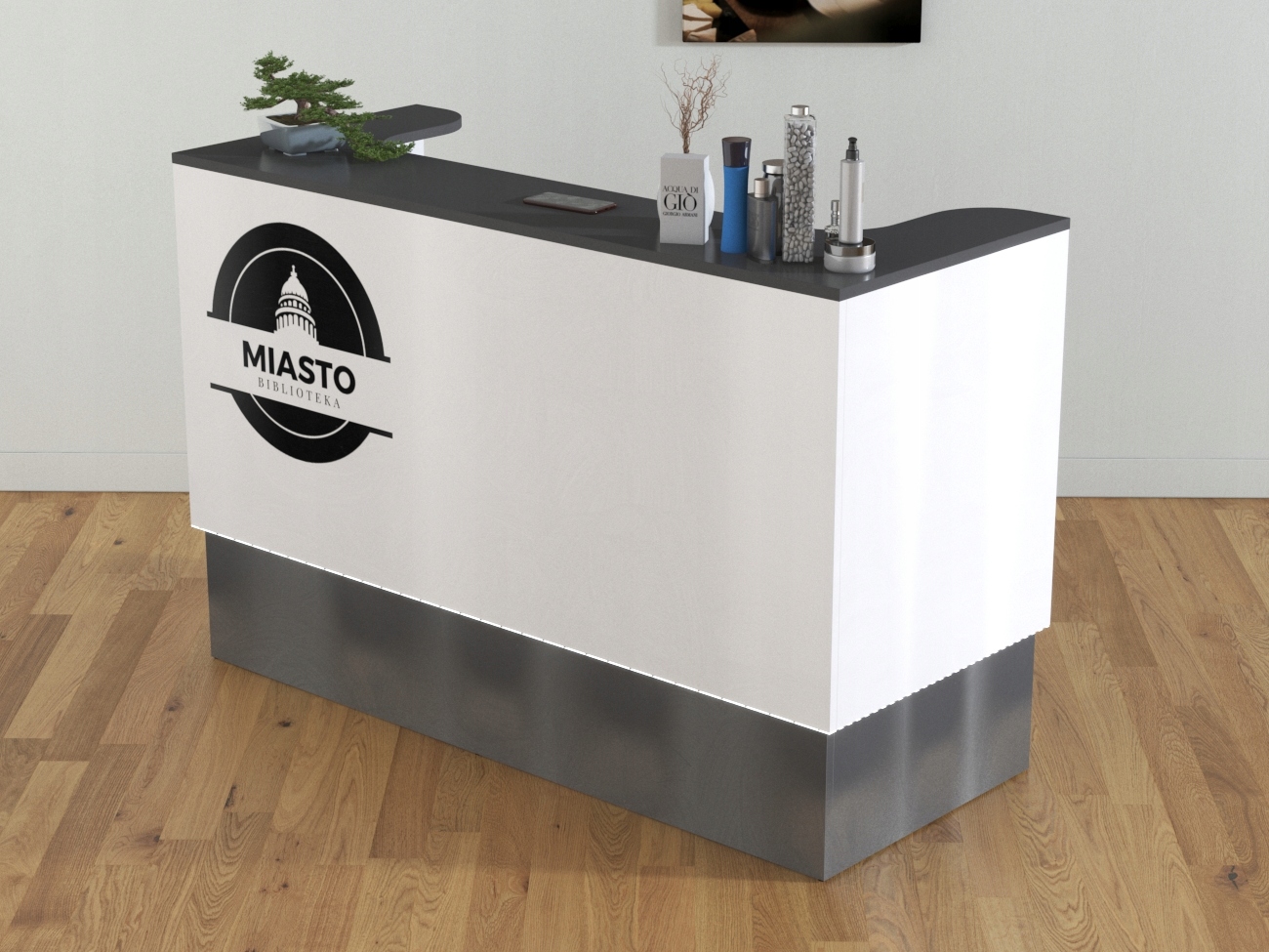или другие размеры, шкафы, полки, логотип , цвета, которые будут определены, и приложения.