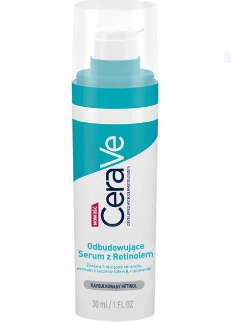 Восстанавливающая сыворотка CeraVe с ретинолом является дополняет ежедневный уход за кожей, склонной к акне и несовершенствам. Эффективные, концентрированные активные ингредиенты устраняют пигментные пятна и остатки прыщей, выравнивают тон кожи и защищают естественный кожный барьер. Ретинол (витамин А), заключенный в микроскопические капсулы, отшелушивает эпидермис и уменьшает видимость темных пятен и пигментных пятен. Ниацинамид улучшает внешний вид пор, а церамиды (1,3 и 6-II) поддерживают барьерную функцию кожи.
