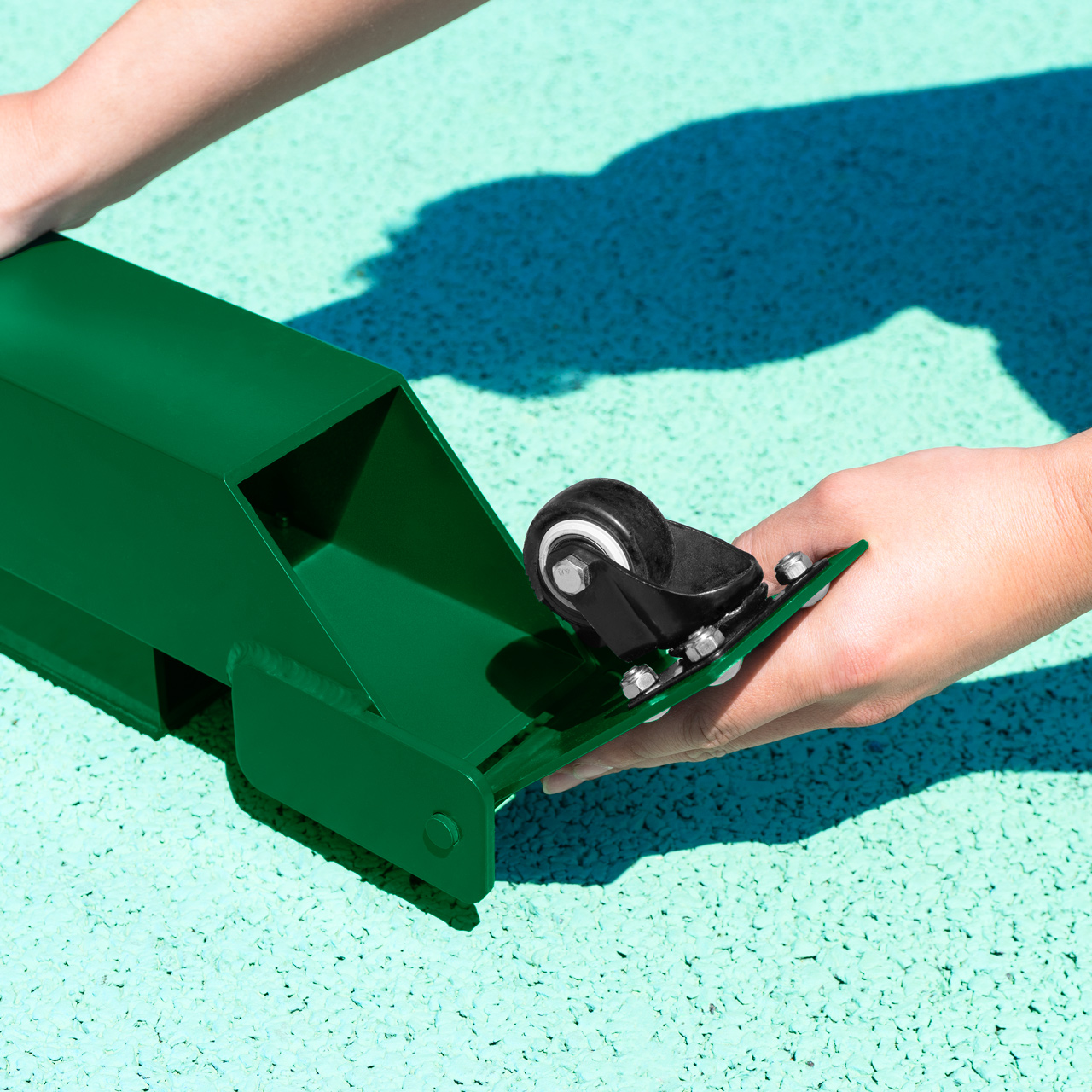 Инновационный дизайн с 4 прочными выдвижными колесиками, которые позволяют с исключительной легкостью перемещать стойки в любом направлении.