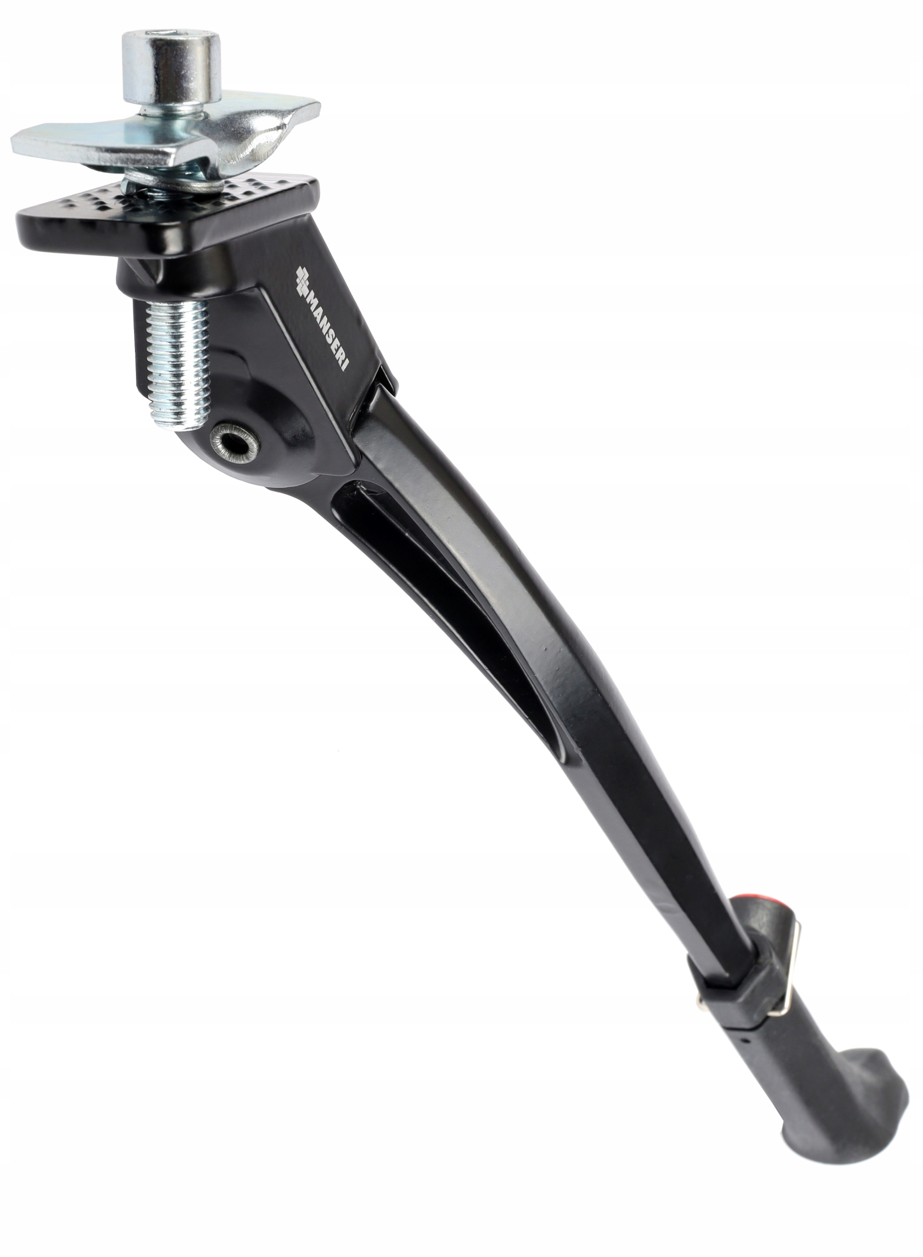 Регулируемая алюминиевая ножка, установленная по центру за корпусом каретки, для велосипедов с колесами 24–29 дюймов (длина) диапазон 32-36 см). Длина подножки регулируется с помощью кнопки. Стабильную поддержку велосипеда обеспечивает большой пластиковый наконечник с рифлением.