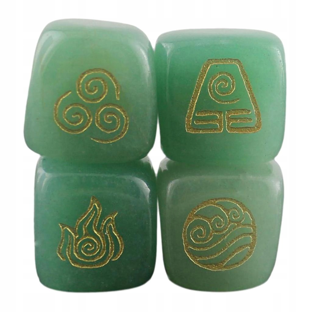 Полированный хрустальный камень с выгравированными рунами четырех элементов, зеленый пальмовый камень
