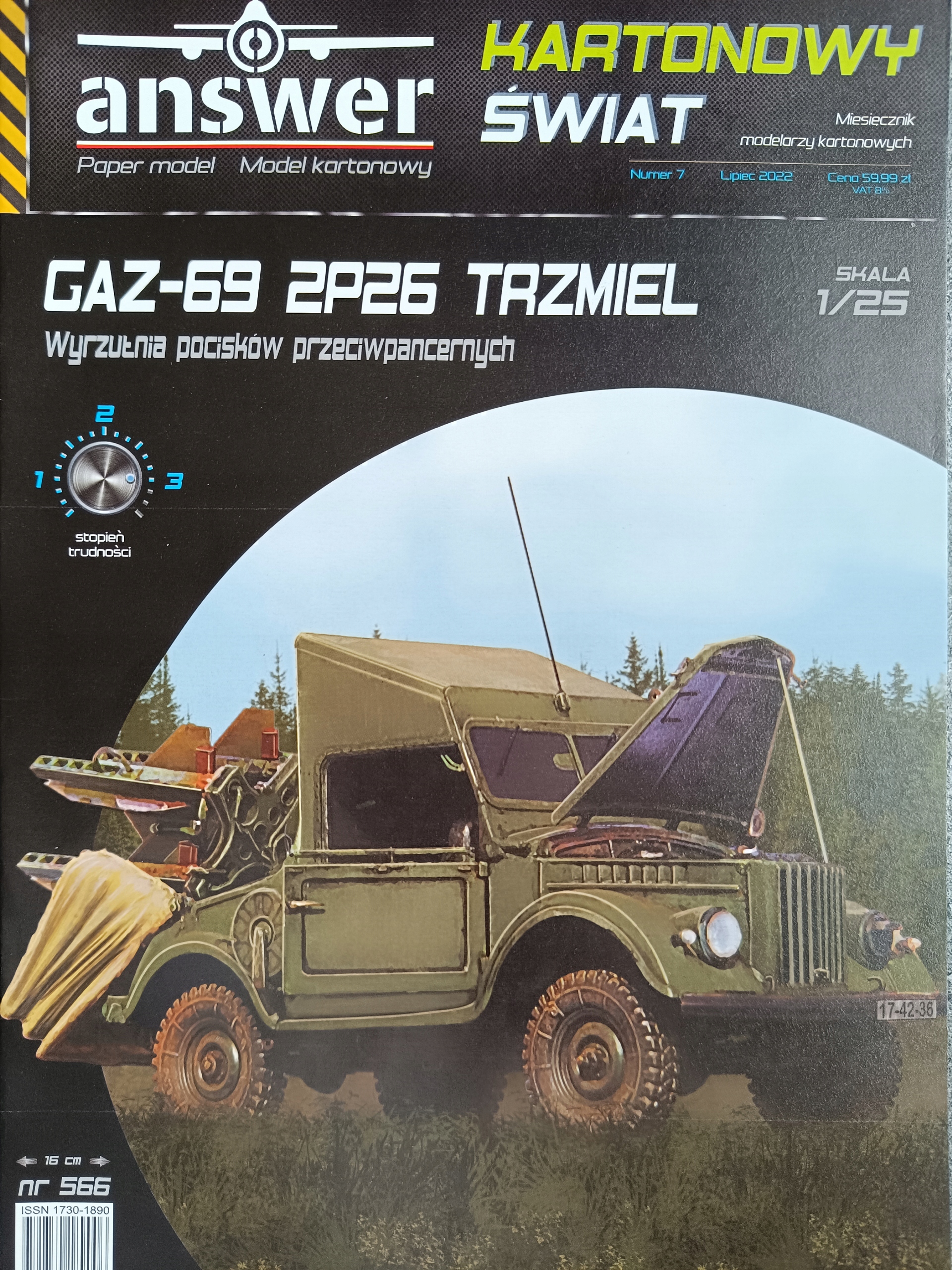 Просматривая «Ответ 7/2022: ГАЗ-69 2П26 Шмель», вы можете быть уверены, что данный товар из каталога «Военные транспортные средства» будет доставлен из Польши и проверен на целостность. В цене товара, указанной на сайте, учтена доставка из Польши. Внимание!!! Товары для Евросоюза, согласно законодательству стран Евросоюза, могут отличаться упаковкой или наполнением.