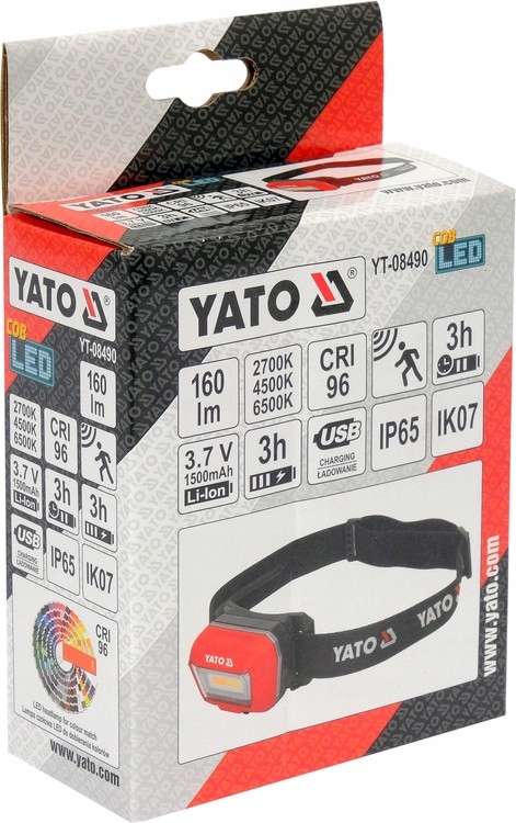 Налобный фонарь Yato YT-08490 с очень высоким индексом цветопередачи CRI96 хорошо воспроизводит естественные условия освещения, то есть солнечный свет. Налобный фонарь позволяет идеально подобрать, среди прочего, нужный цвет и оттенок лака. автомобиль, но его также можно использовать на стройке, в автомастерской и в хобби-целях. Фонарик питается от емкого литий-ионного аккумулятора емкостью 1500 мАч, обеспечивающего до 3 часов работы. Дополнительным преимуществом является встроенный датчик движения, который позволяет включать и выключать светильник простым взмахом руки.
