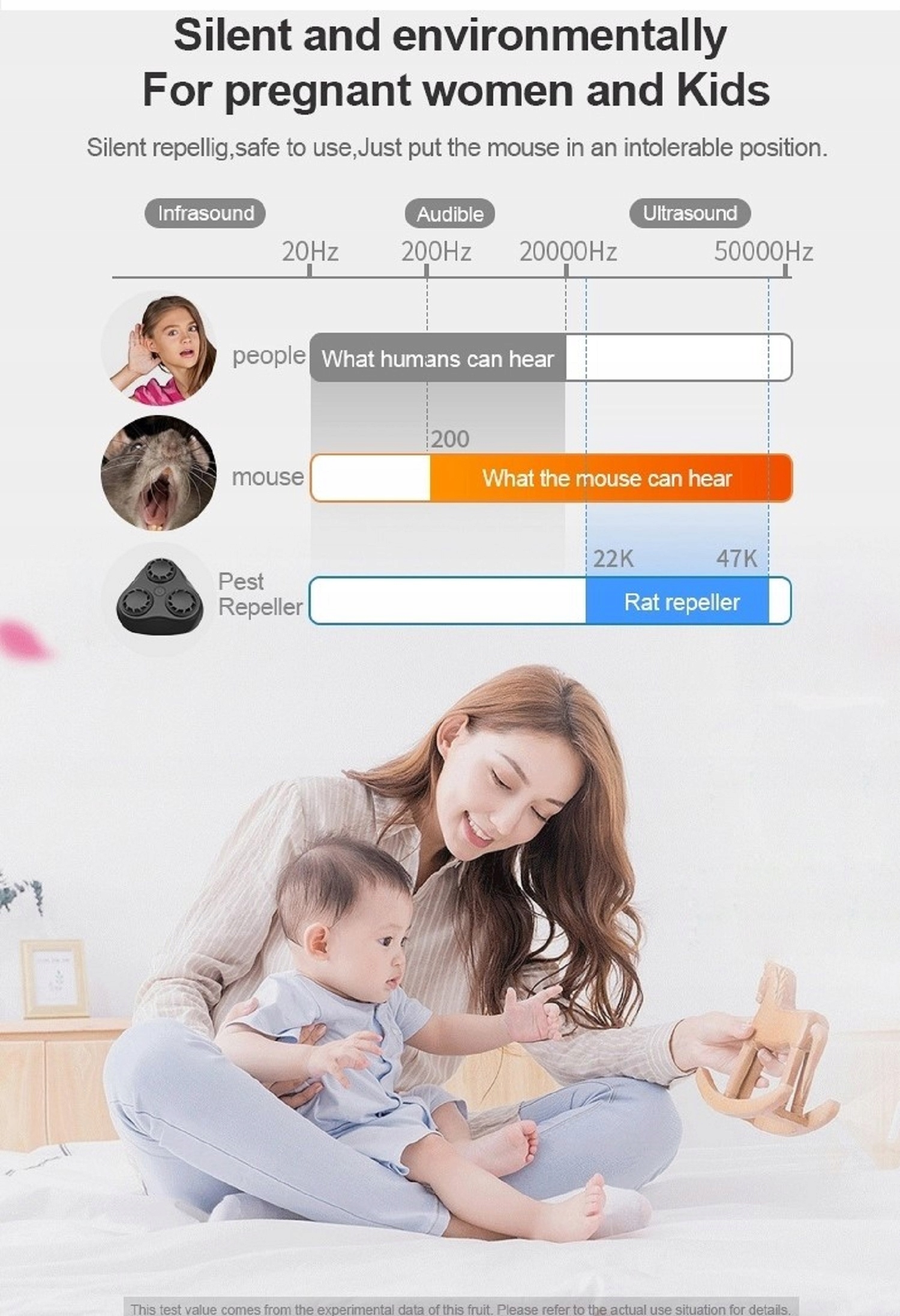 Устройства издают невыносимый шум на неслышимых для человека частотах, совершенно безопасный для здоровья и комфорта жизни человека.