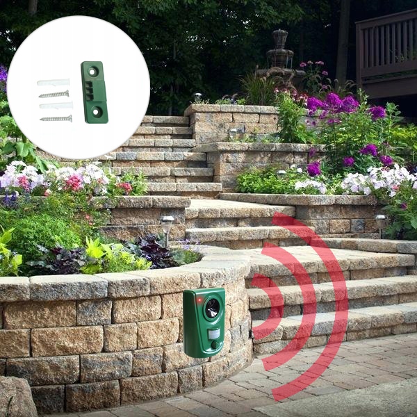 Отпугиватель можно вбить в землю или повесить на дерево, стену или забор. В комплект входят крепежные шпильки и необходимые аксессуары.