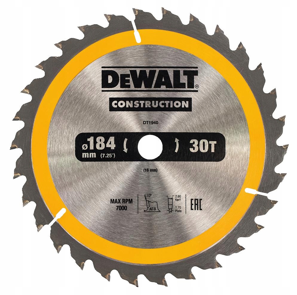 Пильное полотно по дереву DeWALT 184x16 30Z