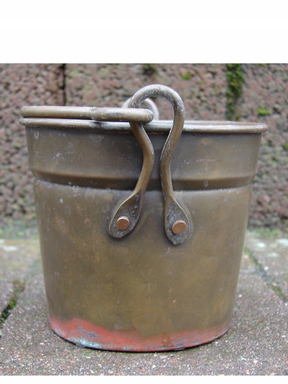 Ведро, цветочный горшок, крышка с латунной ручкой.