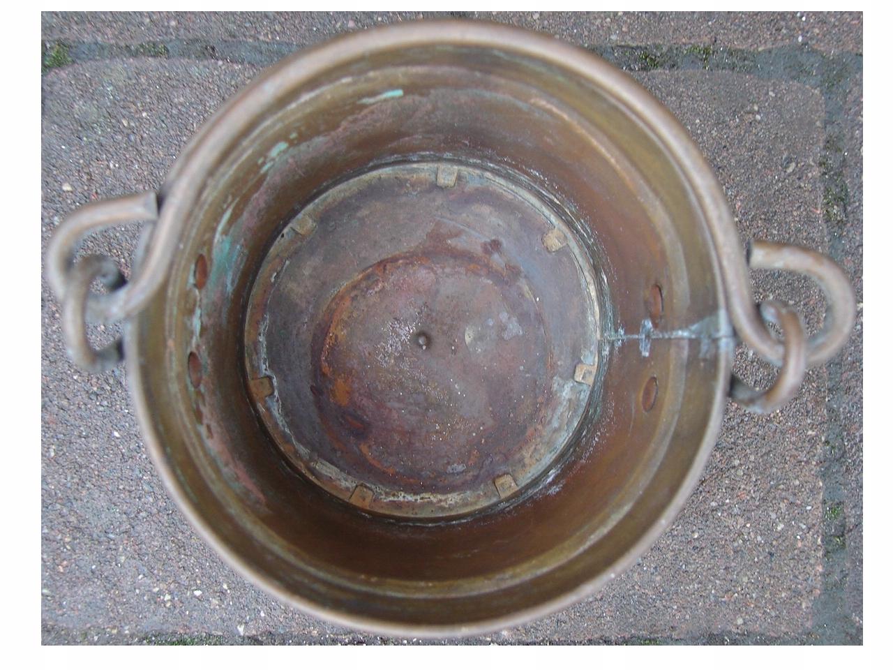 Небольшое ведро, крышка для цветочного горшка с ручками. Изделие ручной работы из латуни.