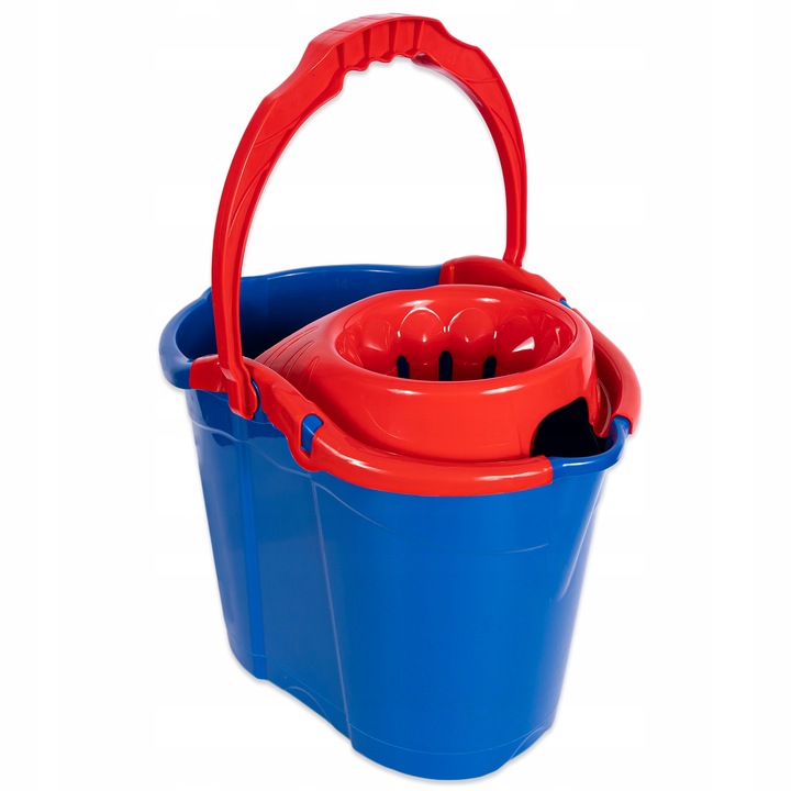 Ведро оснащено съемной соковыжималкой, позволяющей выжимать воду из насадки швабры, что значительно упрощает уборку. Соковыжималка соединяется с ведром прочными защелками, легко надевается и снимается. Он прочный и долговечный, не сломается при более сильном сжатии. Дополнительно имеется отверстие для крепления ручки швабры. Благодаря возможности отключения соковыжималки ковш может найти и другое применение в хозяйстве.