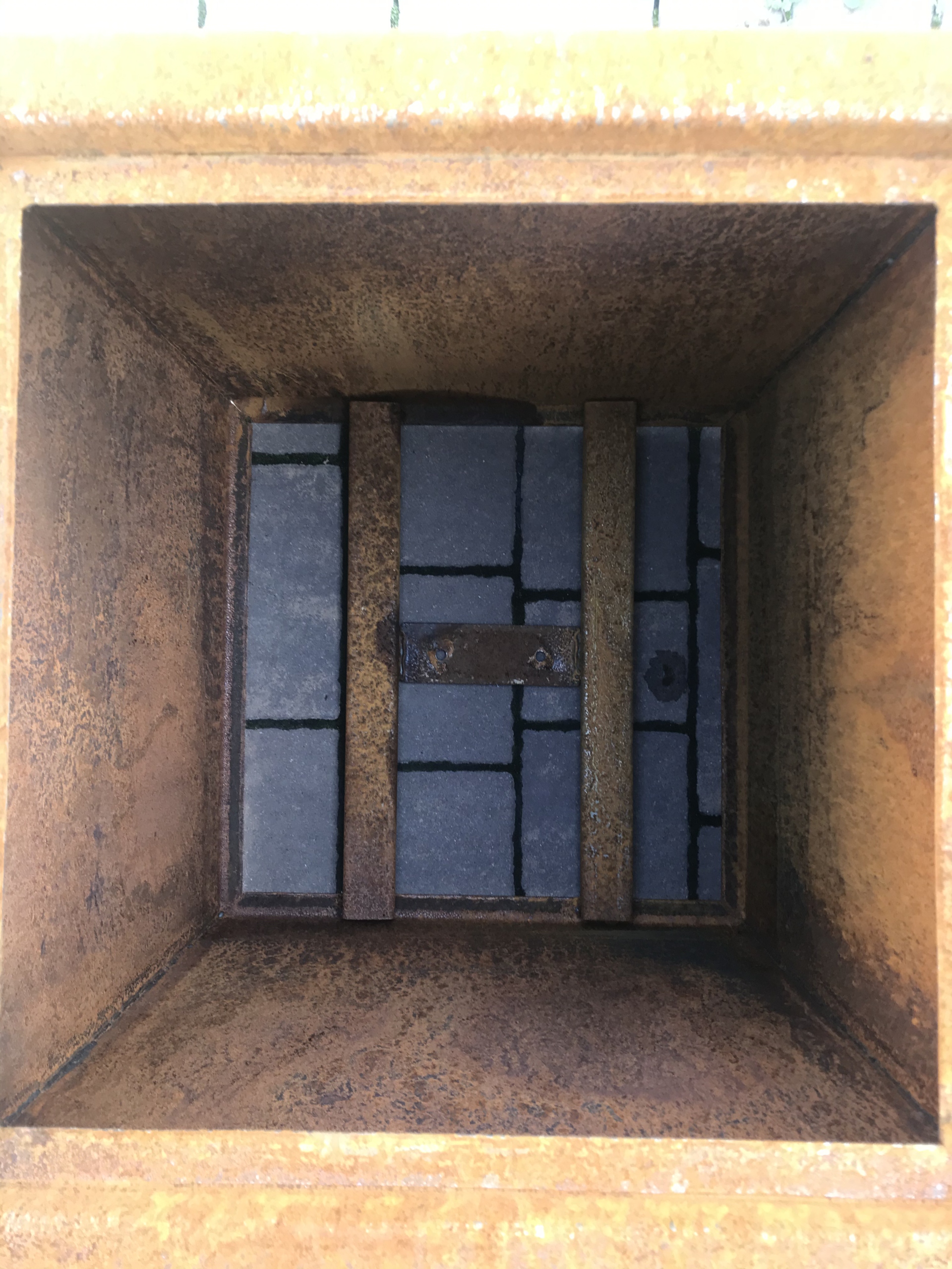 - Корзина изготовлена из коррозионностойкой стали Cor-Ten,
