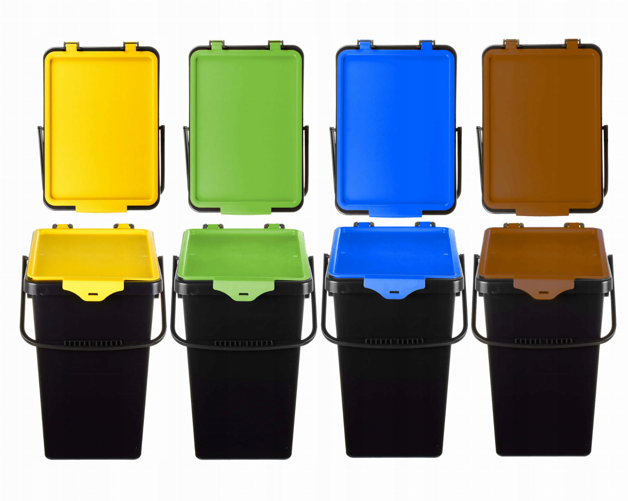Каждое ведро имеет крышку разного цвета.