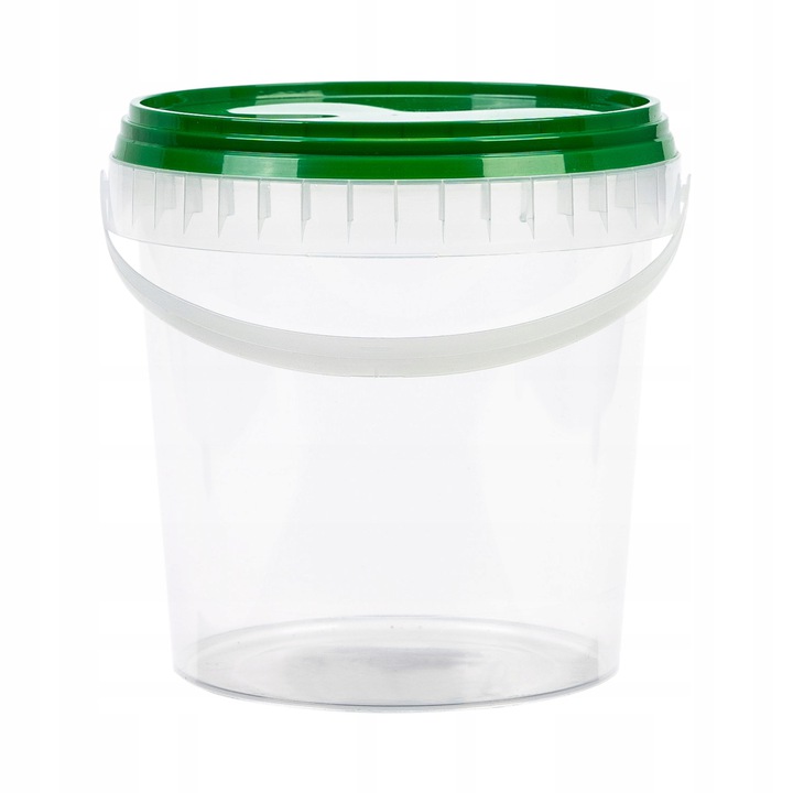 Ведро изготовлено из бесцветного прочного пластика. Имеет плотную запирающуюся крышку. Подходит для употребления с пищей.