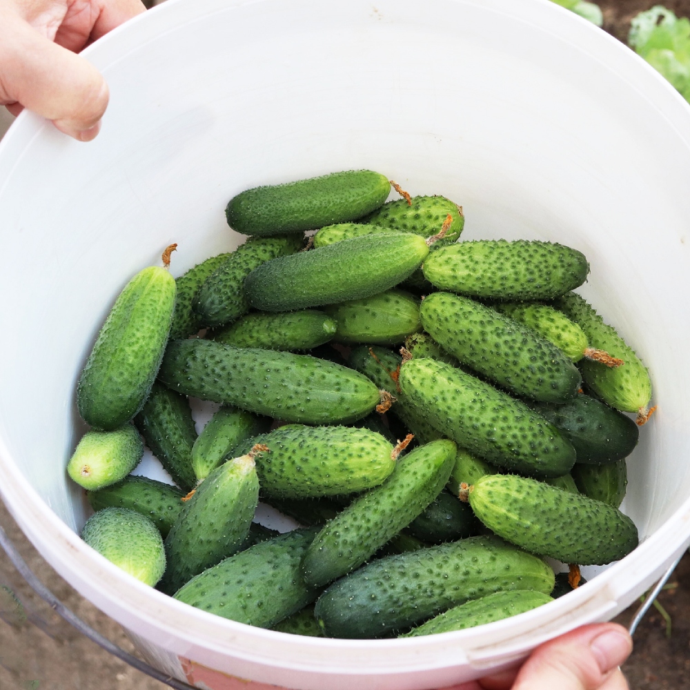 - собираем огурцы и капусту