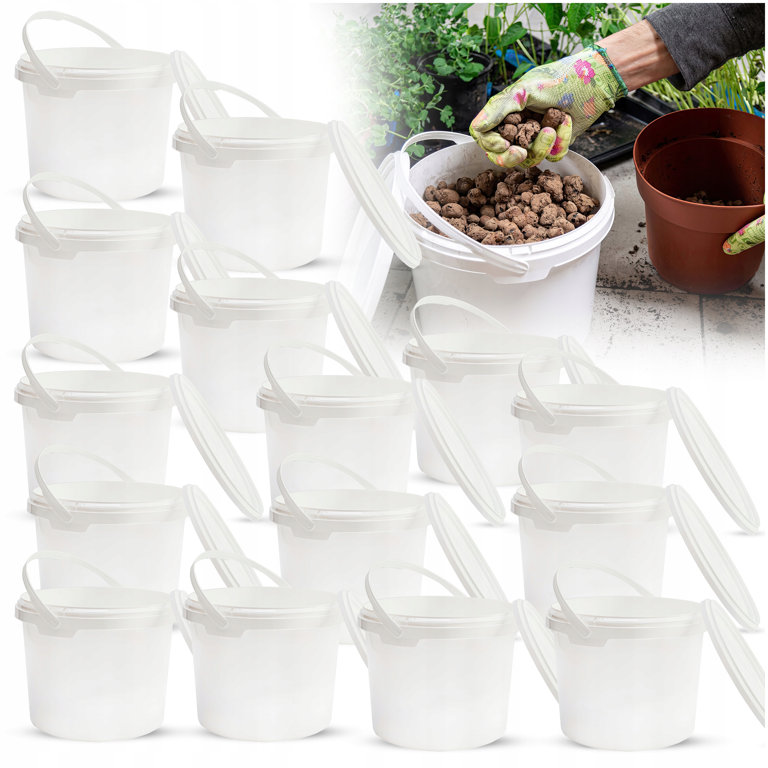 ПЛАСТИКОВОЕ ВЕДРО С КРЫШКОЙ, ПИЩЕВОЕ БЕЛОЕ, 5 Л, НАБОР 15 ШТ.