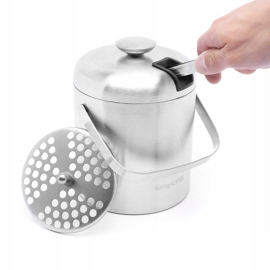 Ведро для льда изготовлено из высококачественной нержавеющей стали. Ведро оснащено щипцами для размещения кубиков льда. Крышка кастрюли позволяет спрятать щипцы. Крышка также оснащена удобной ручкой. Добавленный слив чрезвычайно удобен, удерживая лед над слоем воды, образующимся в результате его медленного таяния. Ведро теплоизолировано за счет использования двойных стенок, что позволяет хранить кубики льда и подавать их в любое время. с напитками.