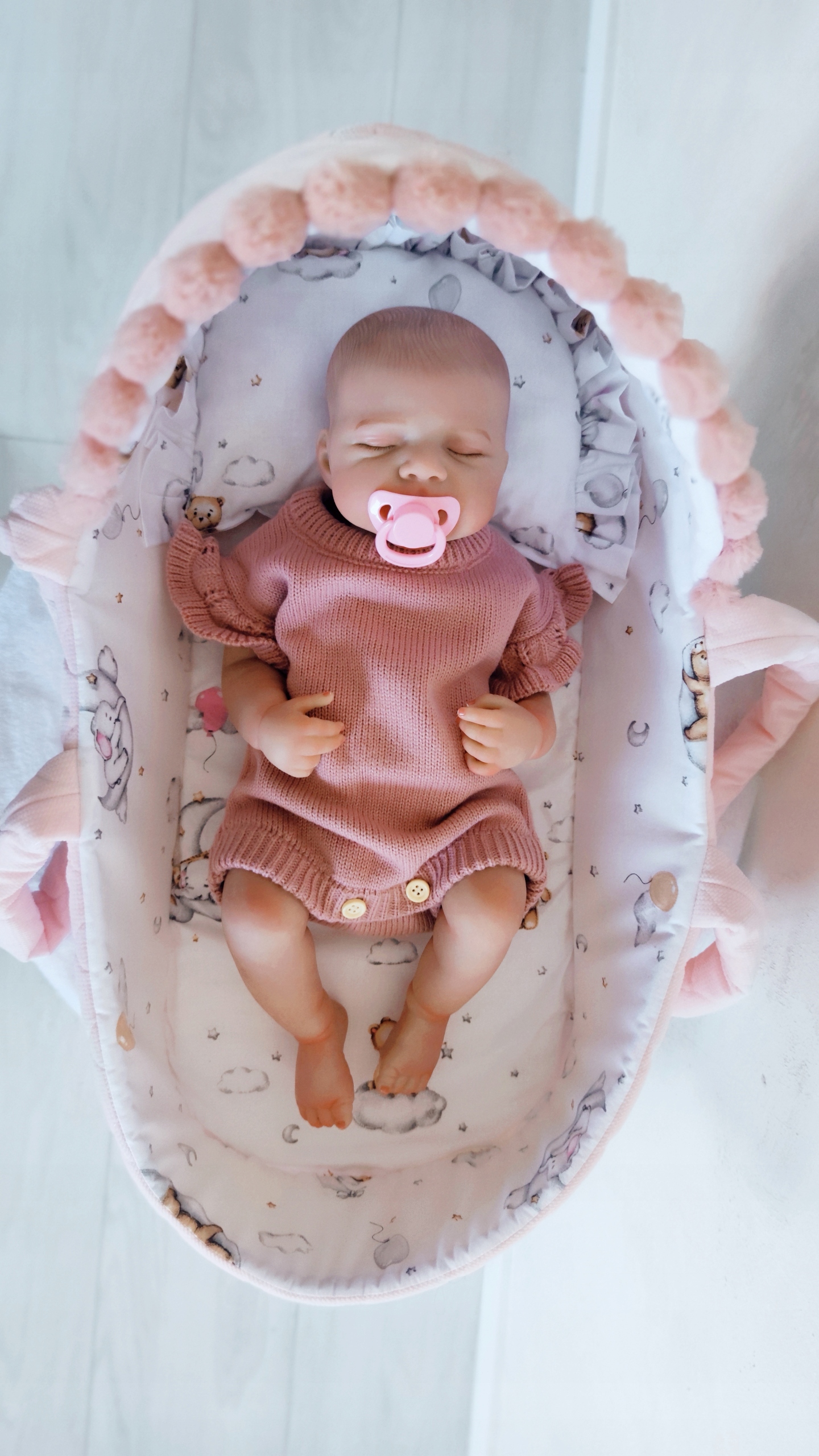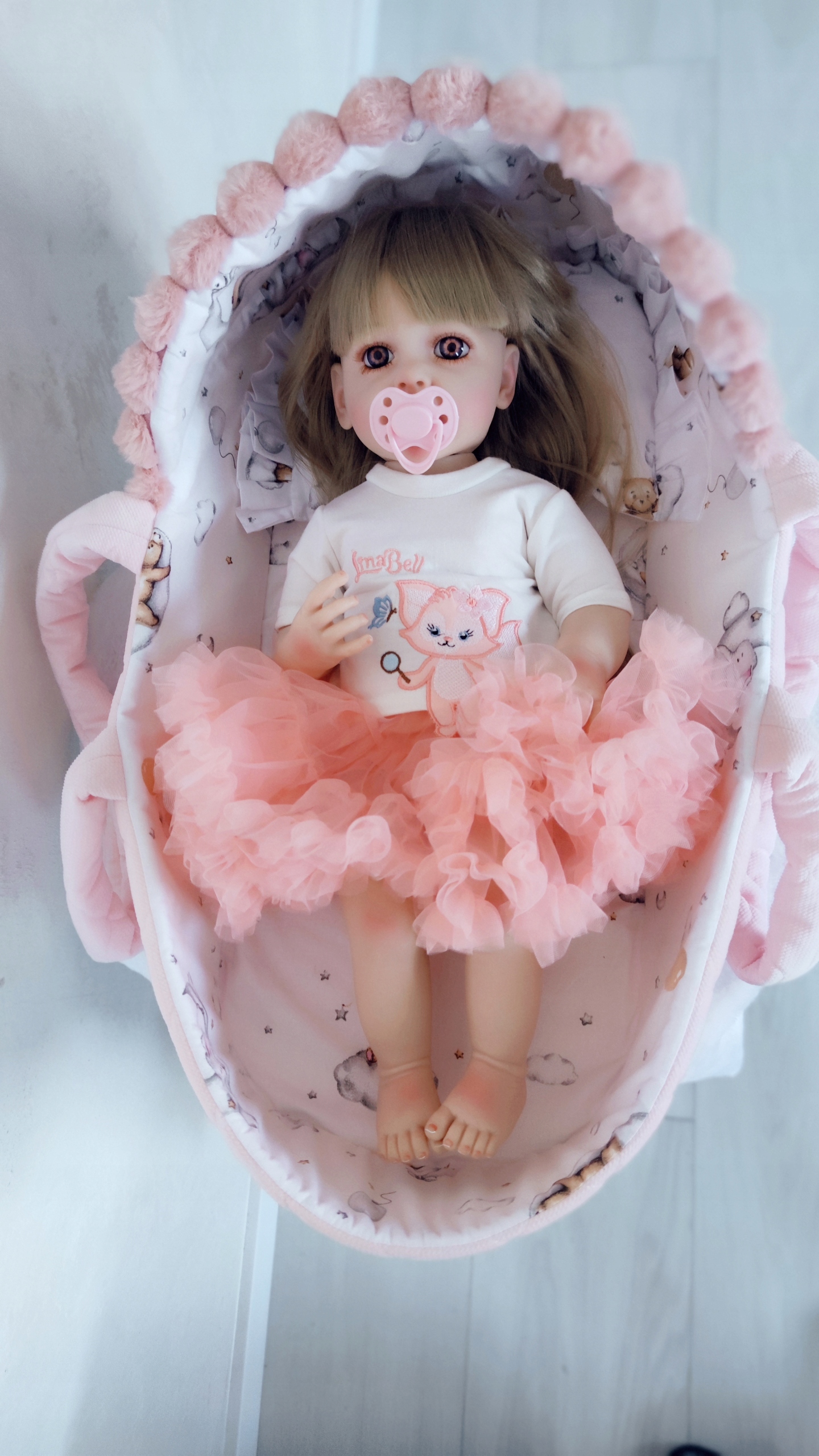 Предложение относится только к корзине (кроватки) с подушкой и одеялом. Это не относится к возрождению кукол, видимых на фотографиях.