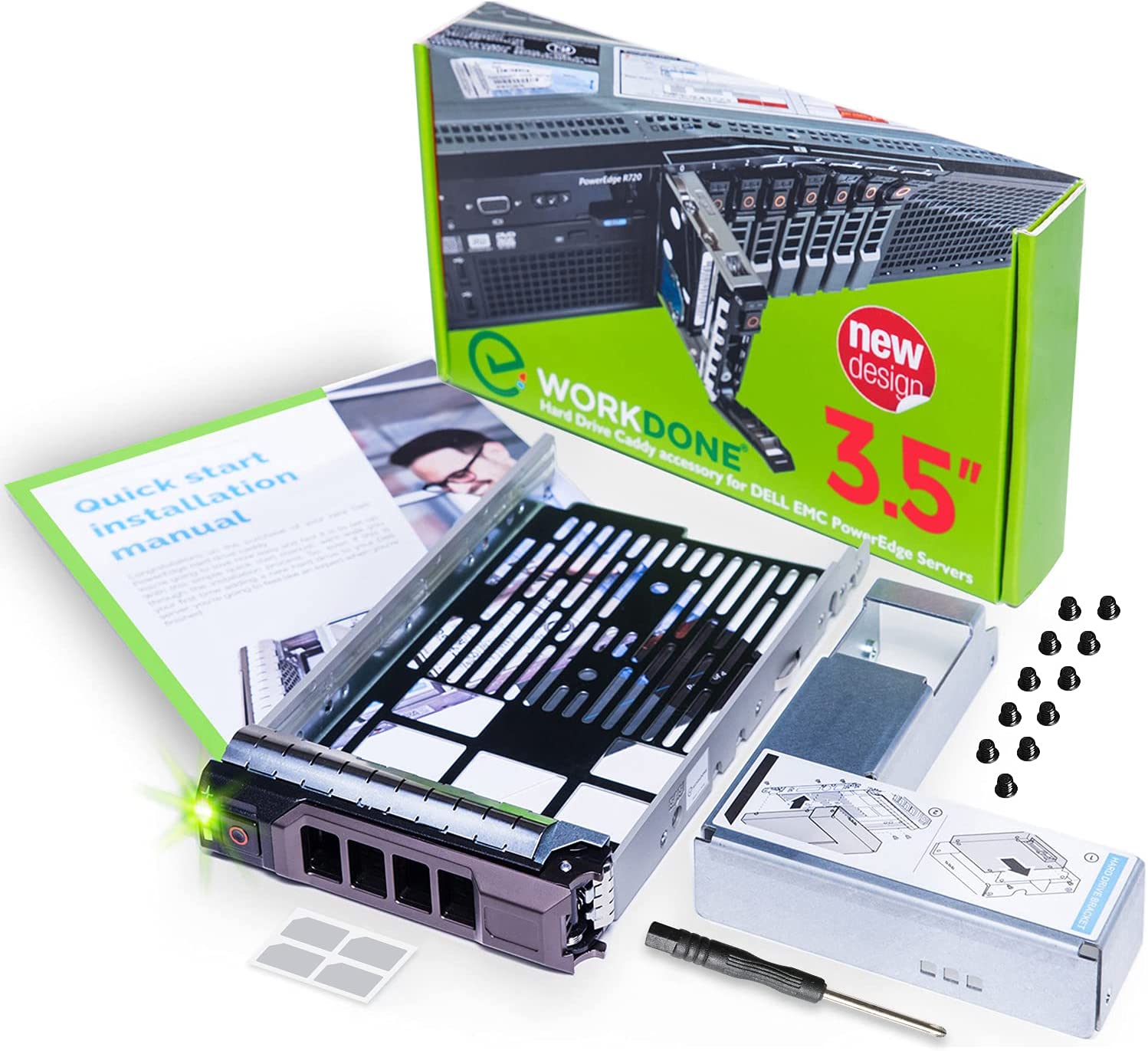 Один и тот же тип сервера PowerEdge может иметь два разных размера углубленных углублений. Ваш сервер должен иметь 4,25-дюймовый перерыв для горячего привода. Этот 3,5 -дюймовый перерыв поддерживает 3,5 -дюймовые жесткие диски, а также поддерживает 2,5 -дюймовые жесткие диски с 2,5 -дюймовым преобразователем. Убедитесь, что в списке находятся поддержка сервера PowerEdge или диска.