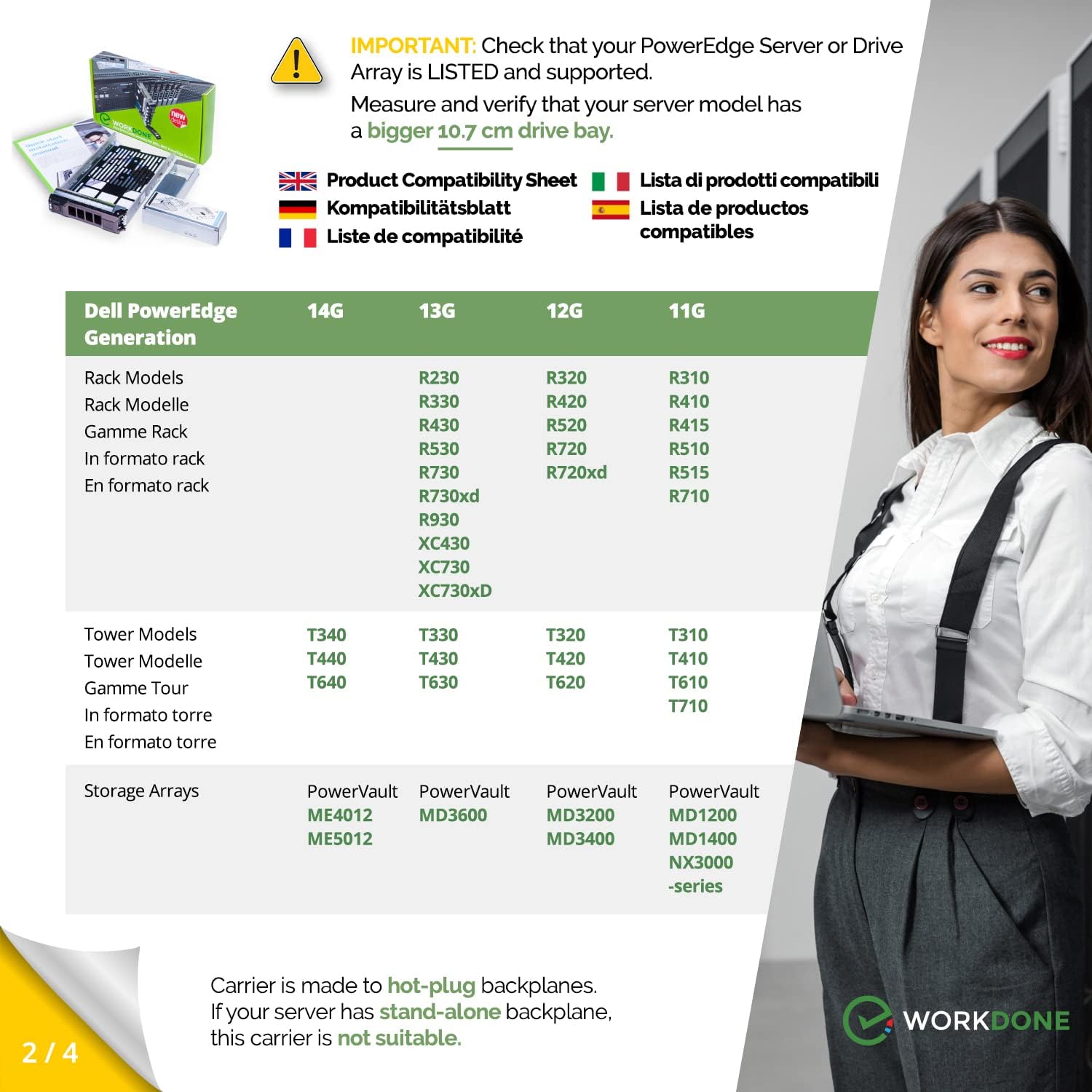 PowerEdge 11. Generation R310 T310 R410 R415 T410 R510 R515 T610 R710 T710; PowerEdge 12. Generation R320 T320 R420 T420 R520 T620 R720 R720XD; PowerEdge 13 -е поколение R230 R330 T330 R430 T430 R530 T630 R730 R730XD R930 XC430 XC730 XC730XD; PowerEdge 14 -го поколения T340 T440 T640; PowerVault ME5012, ME4012, MD3600 MD3400 MD3200 NX3000 MD1200 MD1400