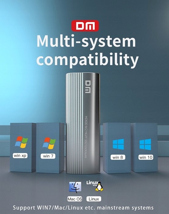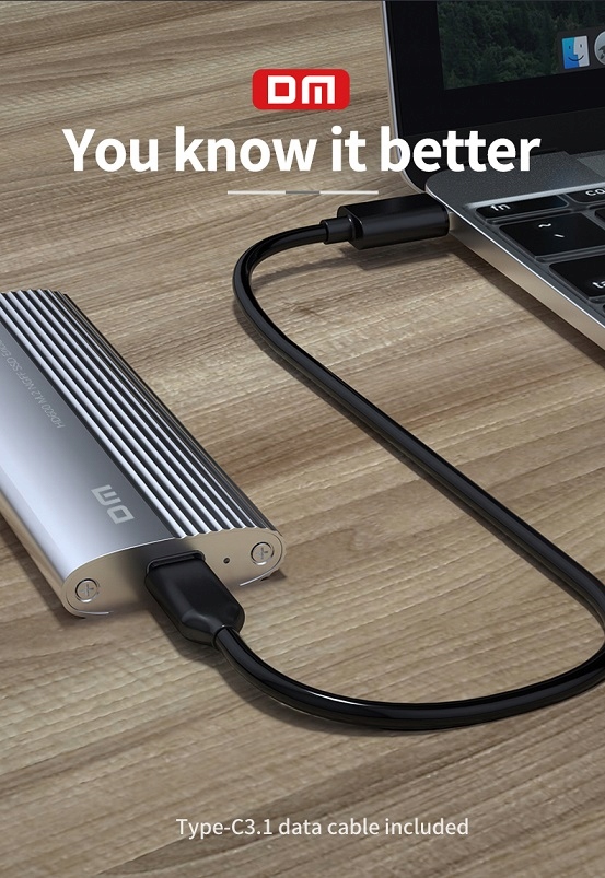 DM HD600 Type-C 3.2 Gen1 Key Box M.2 NGFF SSD Box — это дисковый адаптер, который благодаря высокой скорости передачи данных значительно ускоряет работу компьютера или ноутбука. Вы можете легко начать работу с ним благодаря совместимости со всеми твердотельными накопителями NGFF M.2 SATA. Его корпус из алюминиевого сплава намного прочнее корпусов, изготовленных из стандартного АБС-пластика. Таким образом, SSD в коробке лучше всего защищает накопители и предотвращает их повреждение от ударов и вибраций. Поддерживает скорость передачи данных до 5 Гбит/с с использованием выхода Type-C и интерфейса USB для подключения к ПК. Высокая скорость передачи экономит время, выполняя передачу файлов за очень короткое время. С помощью отвертки, входящей в комплект поставки, вы можете открутить винты в верхней части коробки, поместить диск M.2 NGFF в коробку и использовать его. Технические данные Код продукта: DM HD600 Цвет: серебристый Материал: алюминиевый сплав, ABS Скорость передачи данных: 5 Гбит/с Максимальная емкость диска: 6 ТБ Поддерживаемый размер диска: M.2 (NGFF) 2230/2242/2260/2280 SSD Интерфейс подключения : Type-C 3.2 Содержимое упаковки 1 x DM HD600 Type-C 3.2 Gen 1 B&M/B Dongle M.2 NGFF SSD Box 1 x отвертка 1 x винт 1 x слот для винта 1 x USB-кабель для передачи данных типа C