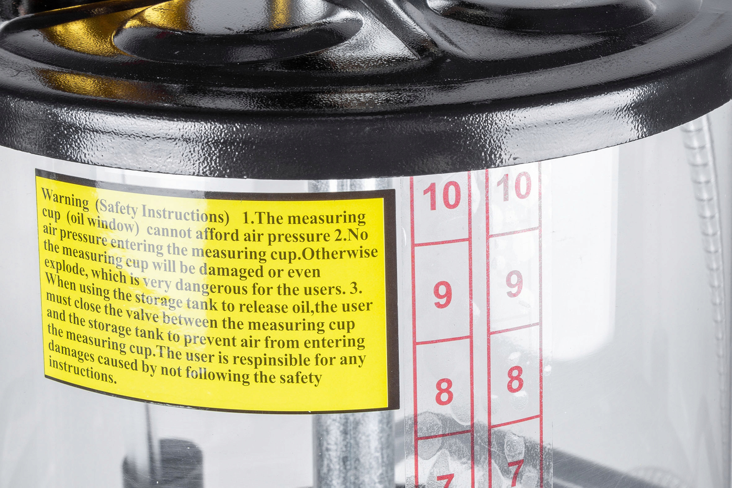 Контрольная емкость со шкалой емкостью 10 литров позволит вам постоянно проверять количество и состояние масла.