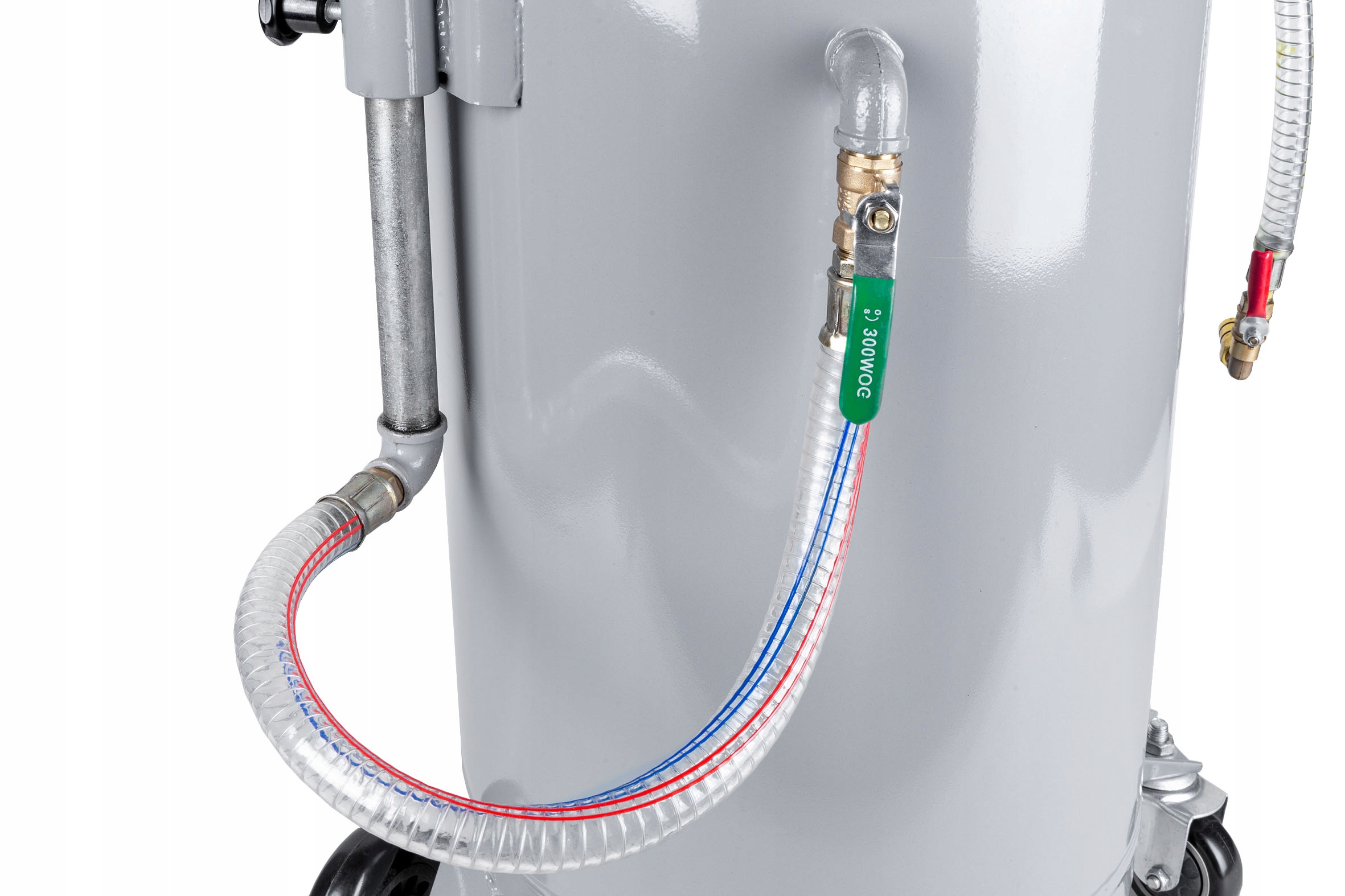 Благодаря своей конструкции и использованию комплекта из 4 колес (в том числе 2 поворотных) устройство мобильно и легко транспортируется. Форма резервуара и использование ручки в верхней части устройства позволяют удобно переносить, транспортировать и работать с устройством.