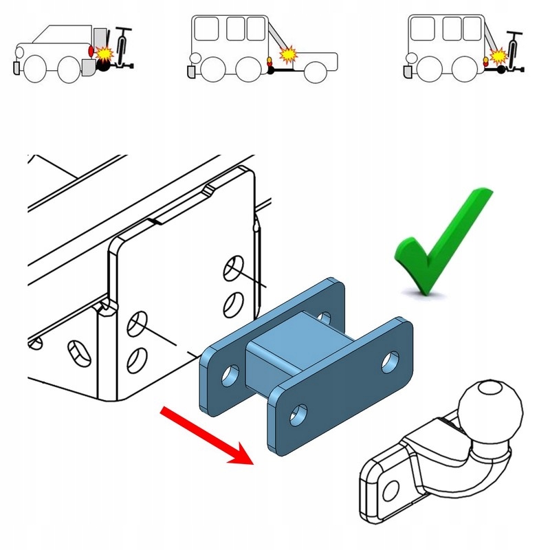 Кроме того, это расстояние может быть полезно при буксировке трейлера с помощью клипа Al-Ko, который не может быть подключен к стандартному крюку