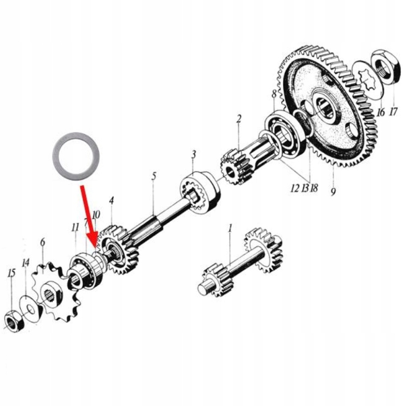 The distance pad between the main shaft bearing (6201) and the 18Z gear on the main shaft